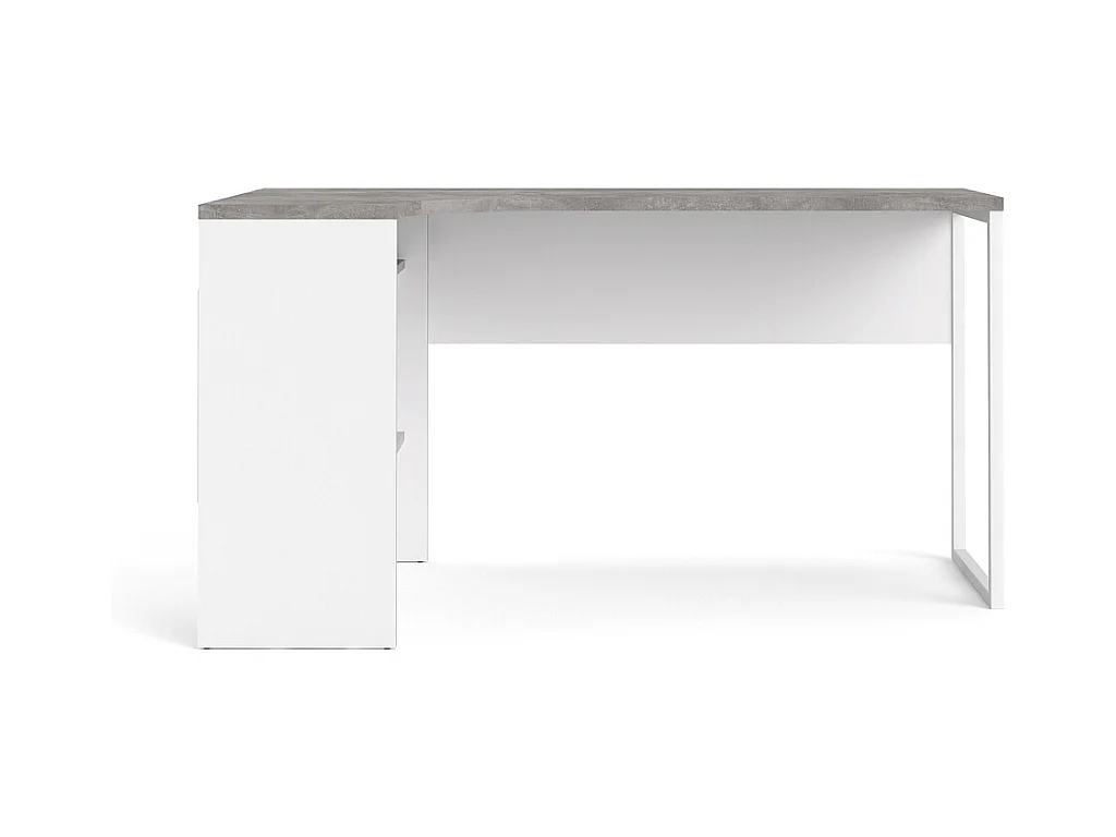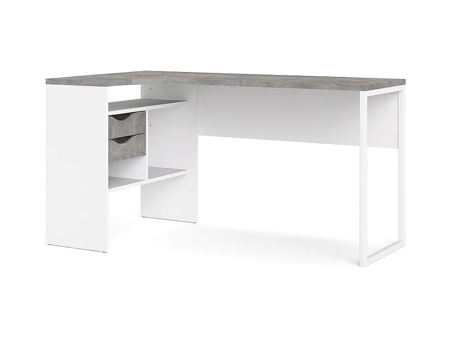 Plus Schreibtisch Eckschreibtisch mit 3 Regalen und 2 Schubladen, weiß / Beton Dekor.