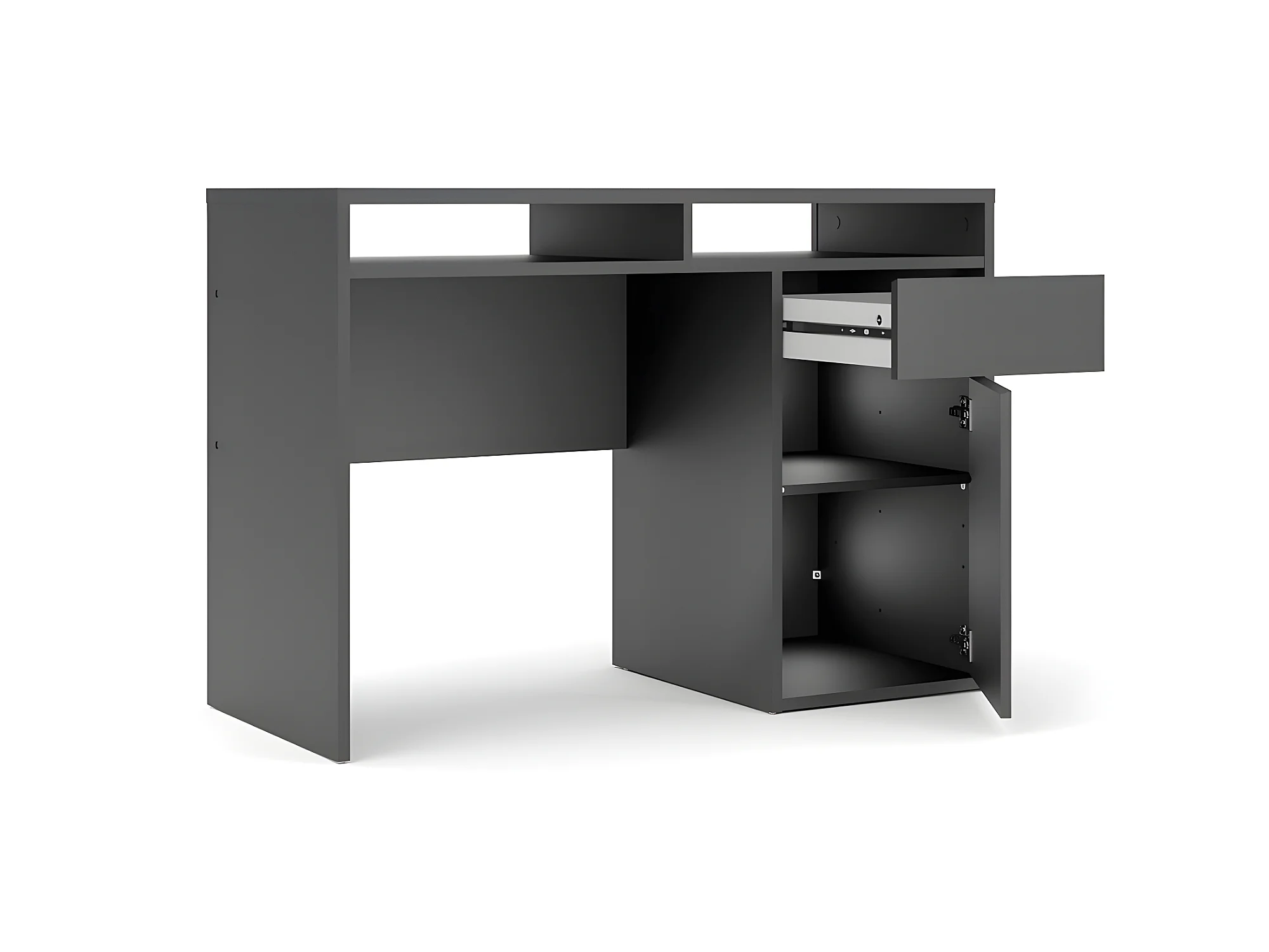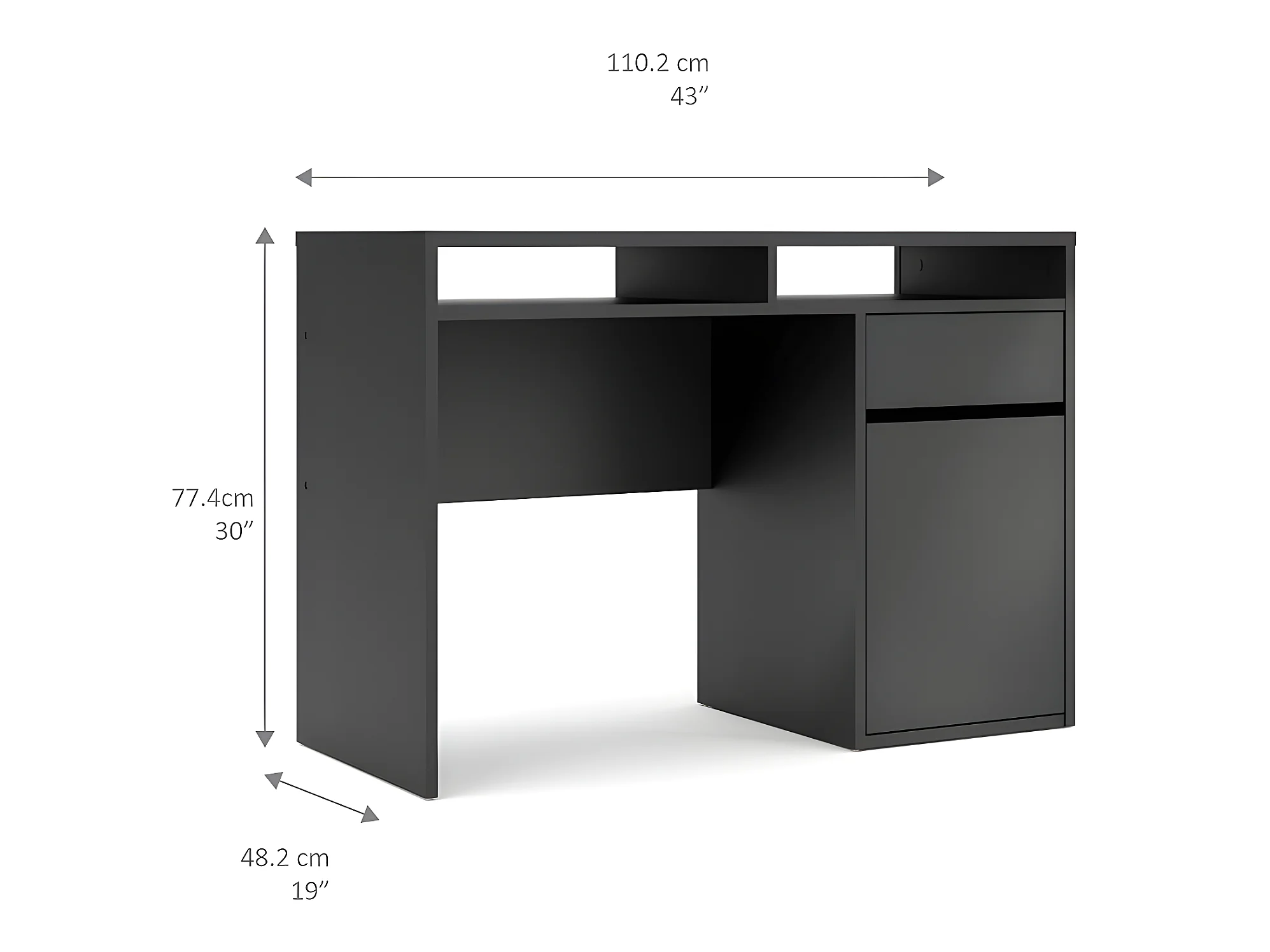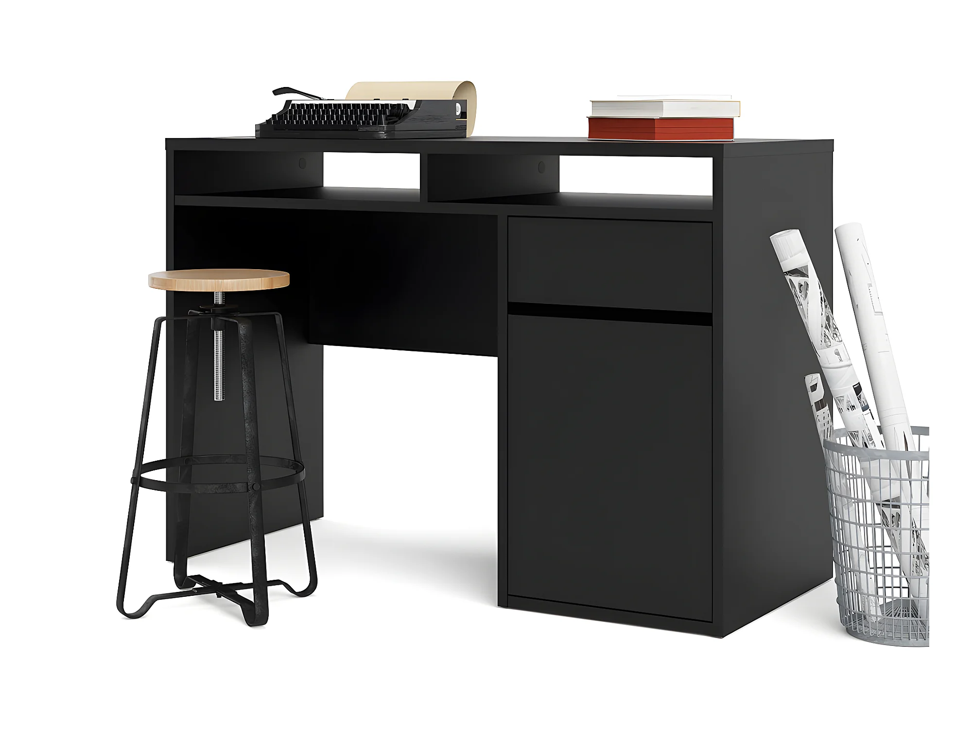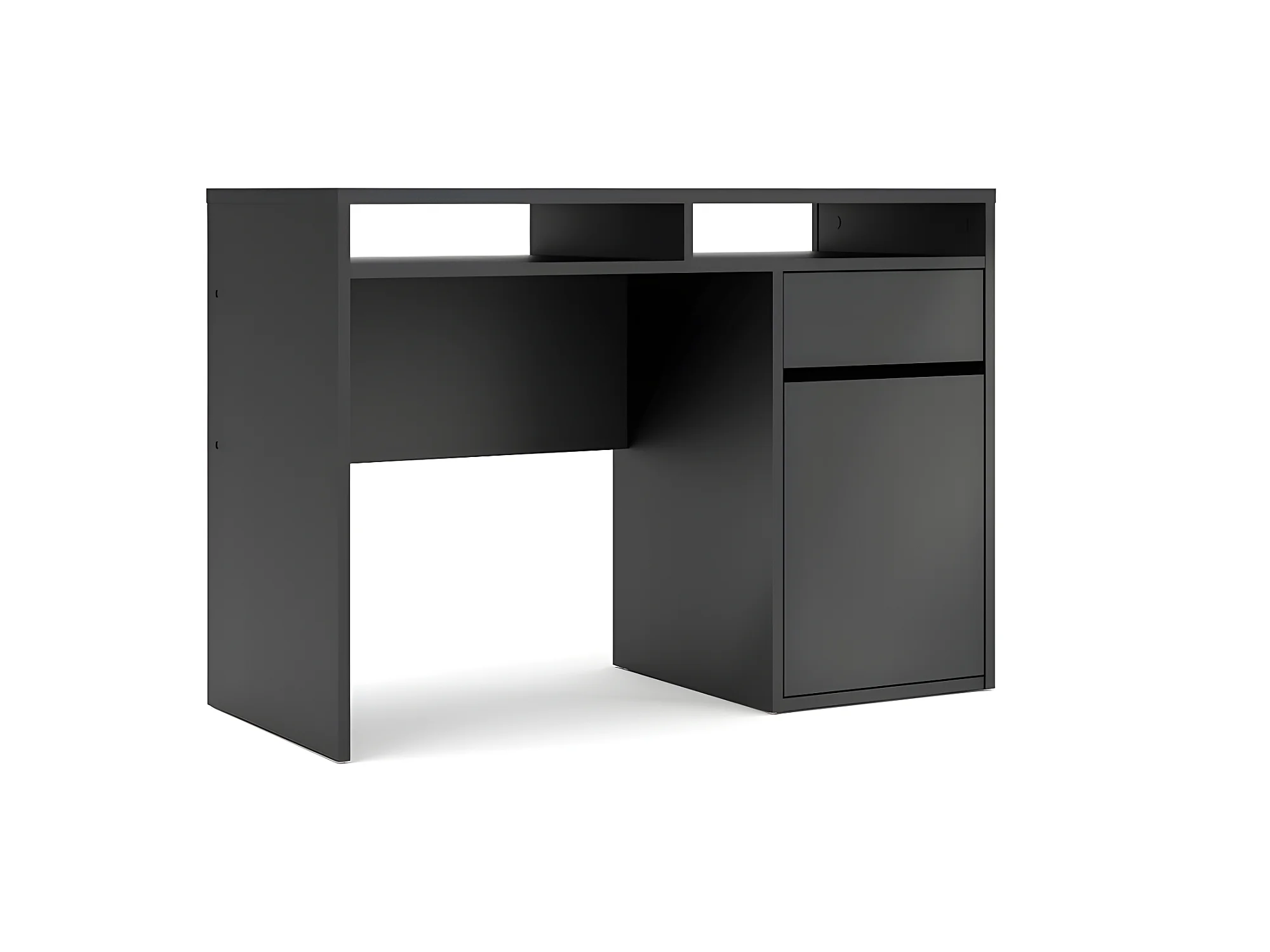 Plus Schreibtisch mit 1 Tür, 1 Schublade und 2 Regalen, mattschwarz.