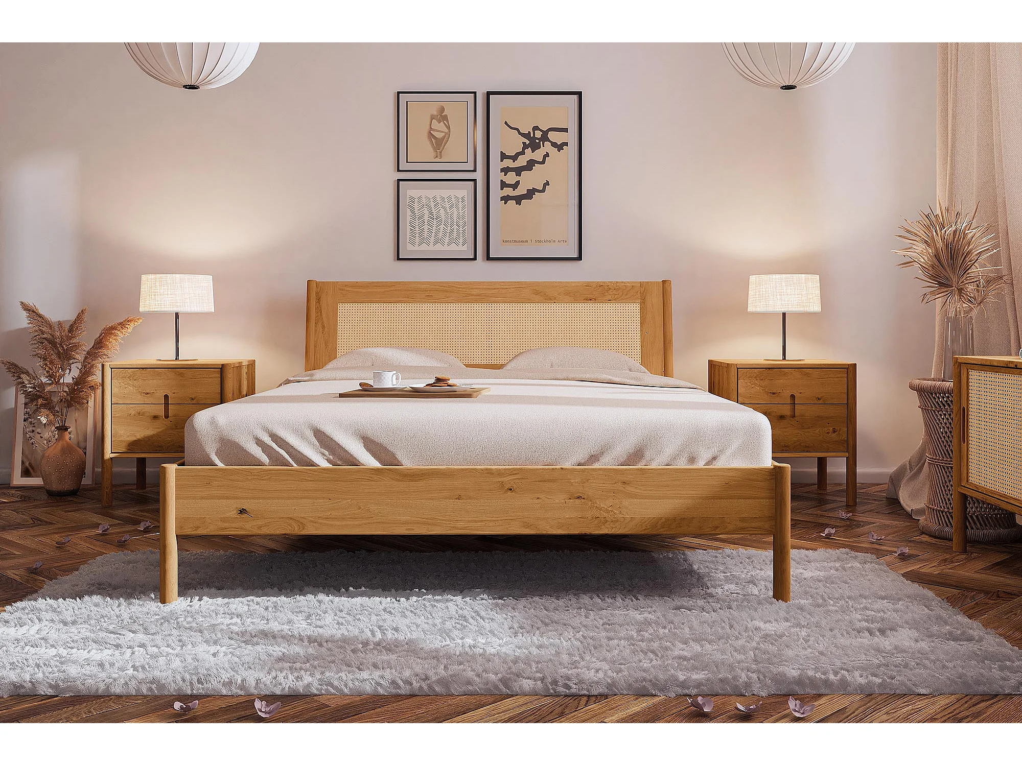 POLA - Bett mit Rattankopfteil 100 x 200 aus Wildeiche lackiert