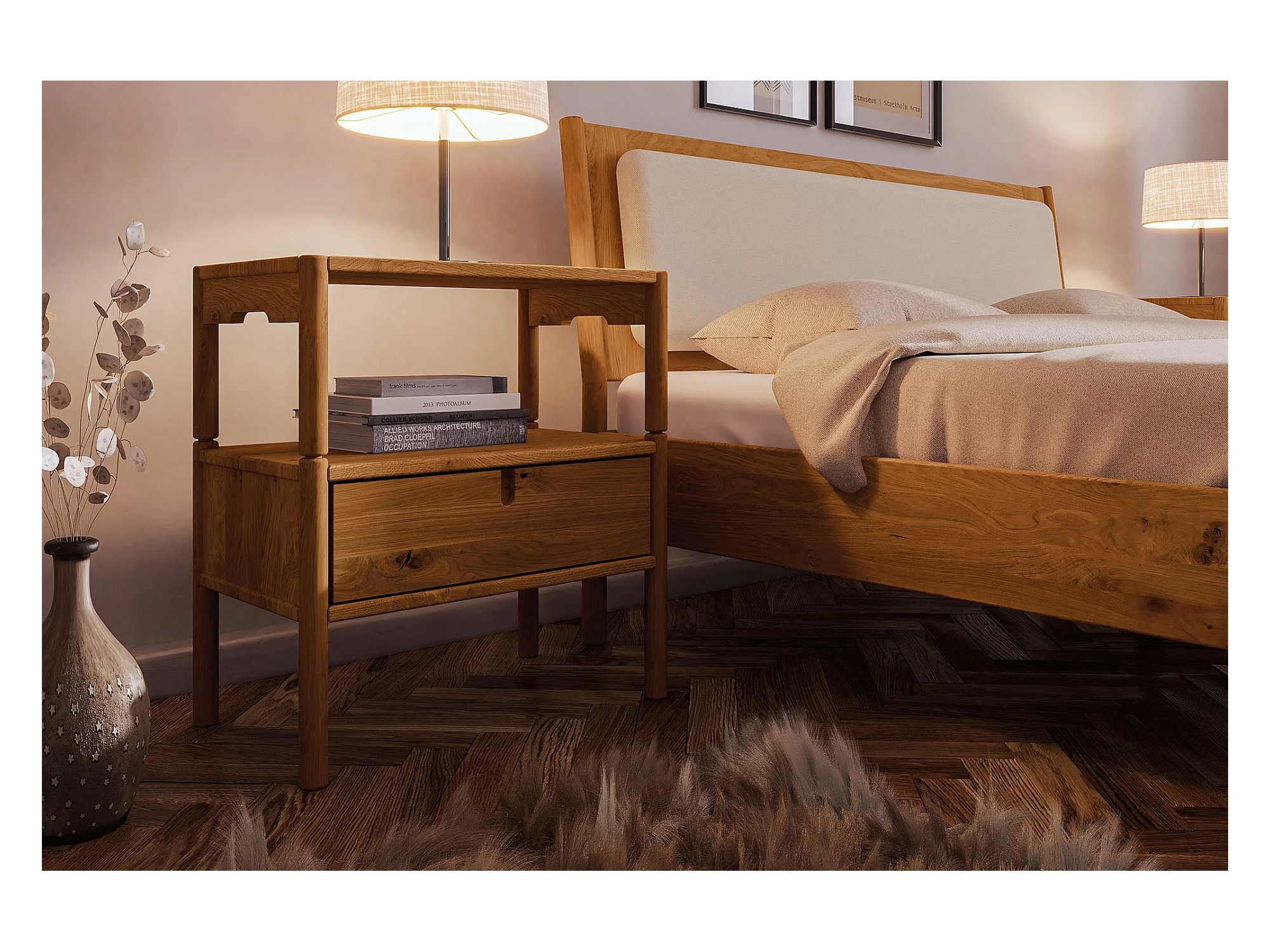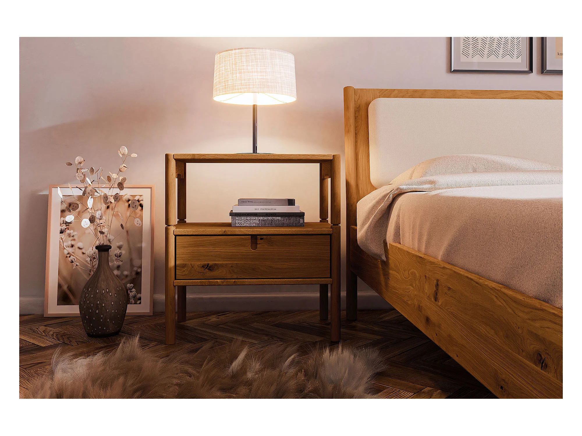 POLA - Nachttisch mit Frühstückstisch aus Wildeiche, naturgeölt