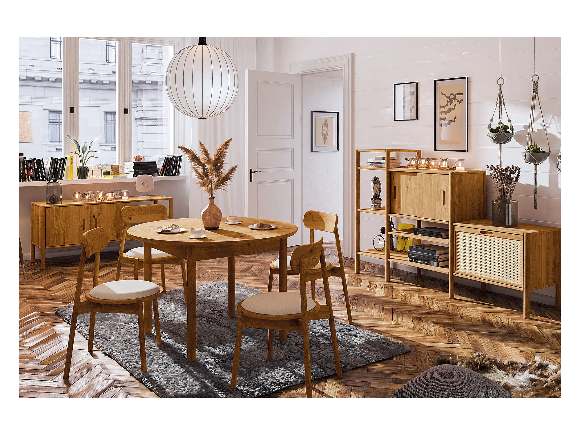POLA - Runder Tisch mit Ausziehfunktion aus Wildeiche, naturgeölt Φ120