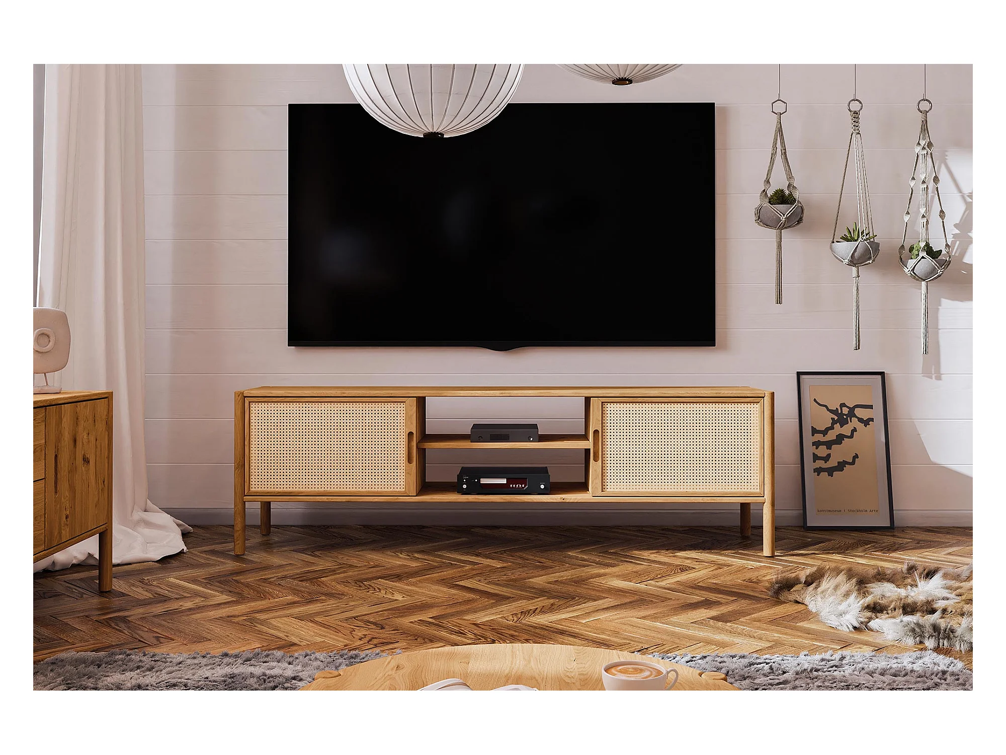 POLA - TV-Möbel mit Rattantüren aus Wildeiche naturgeölt