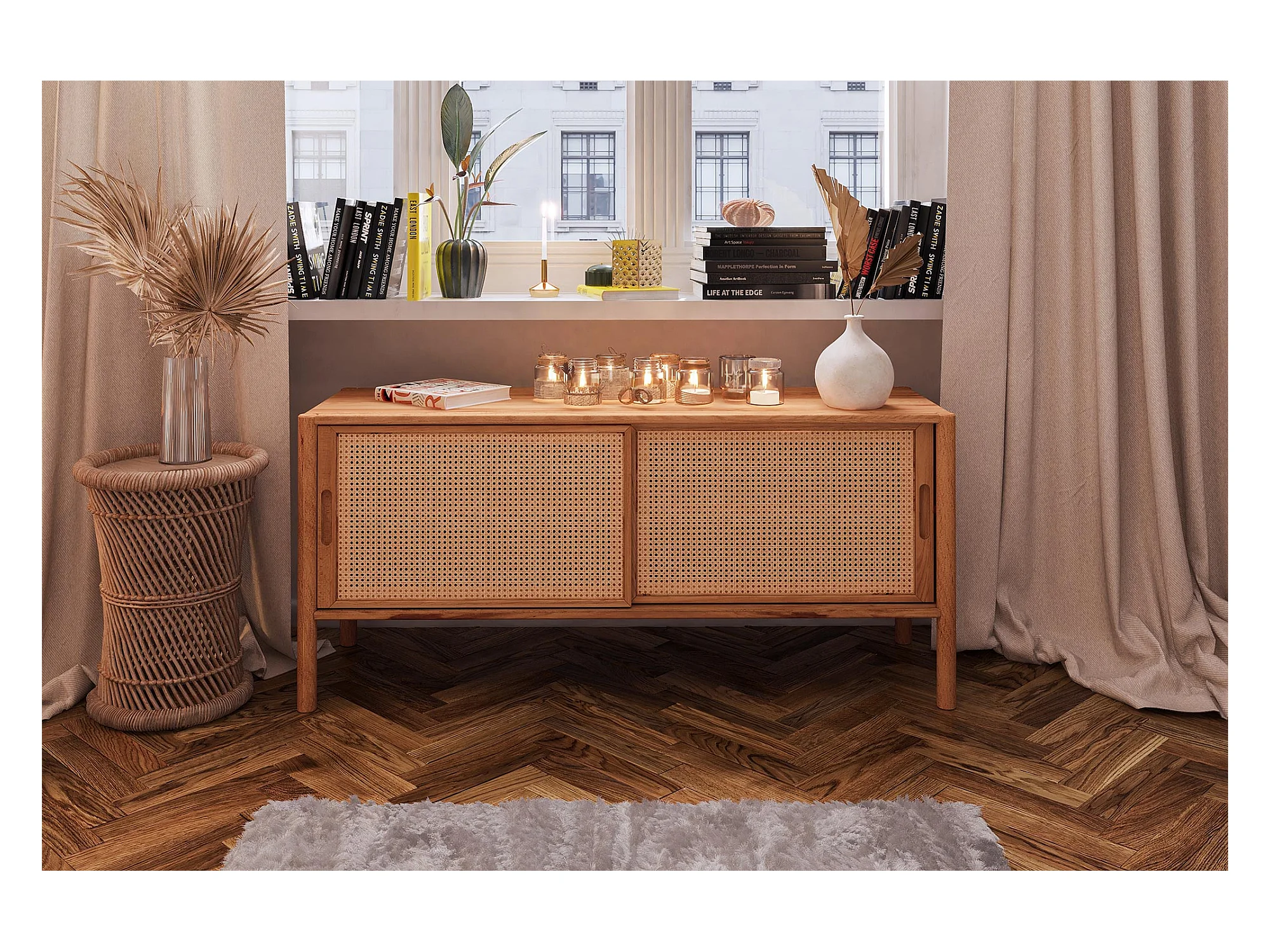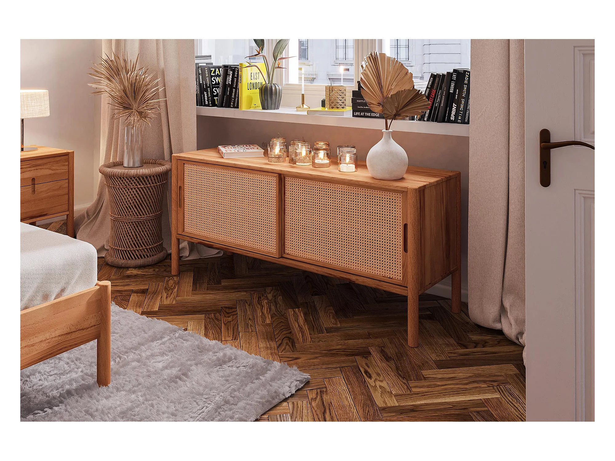 POLA - TV-Möbel mit Schiebetüren aus Kernbuche naturgeölt