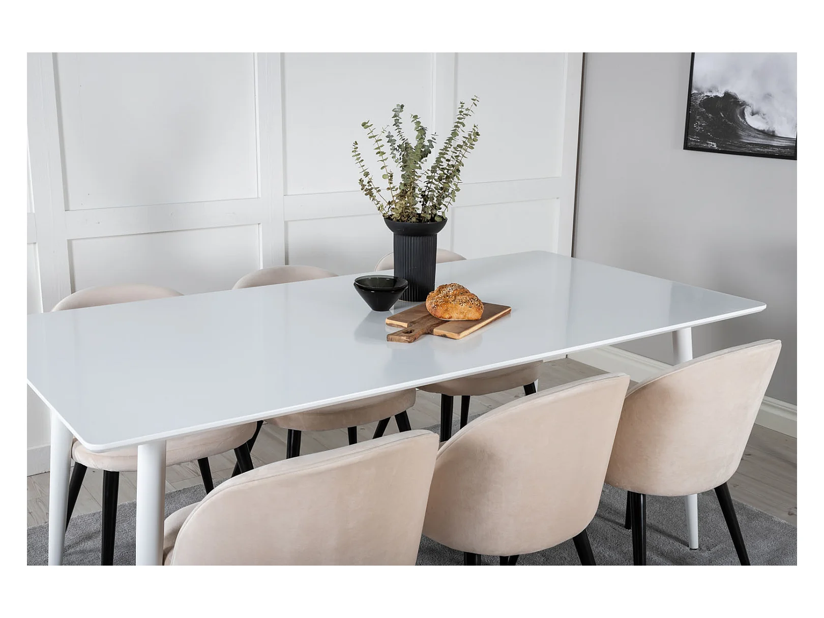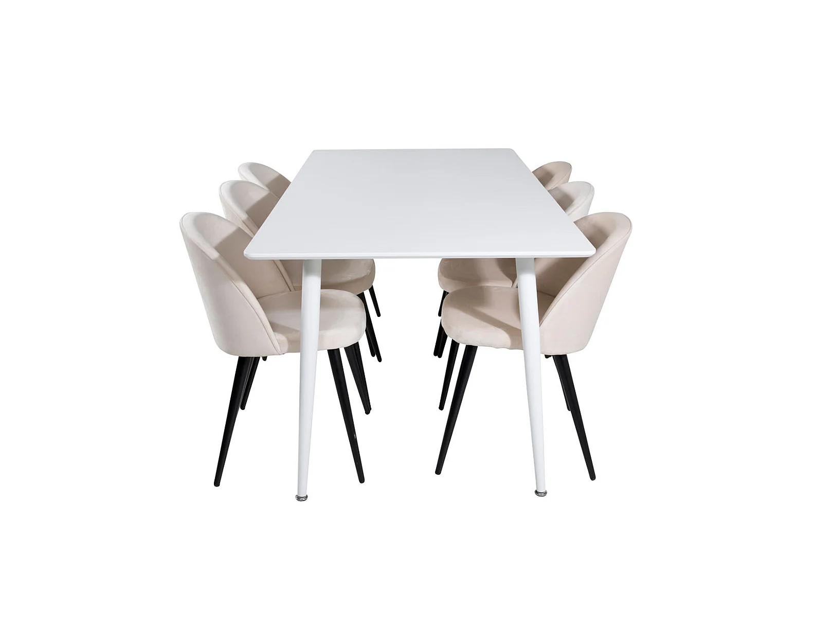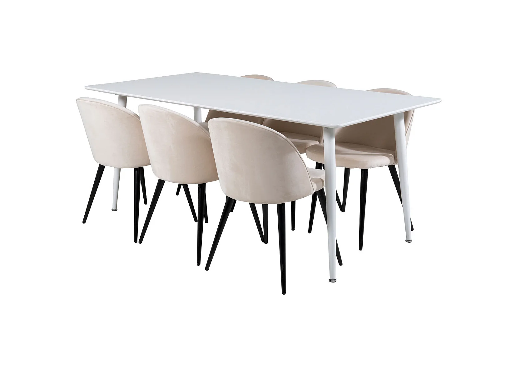 Polar180X90WHWH Essgruppe Esstisch weiß und 6 Velvet Esszimmerstühle Velour beige, schwarz.