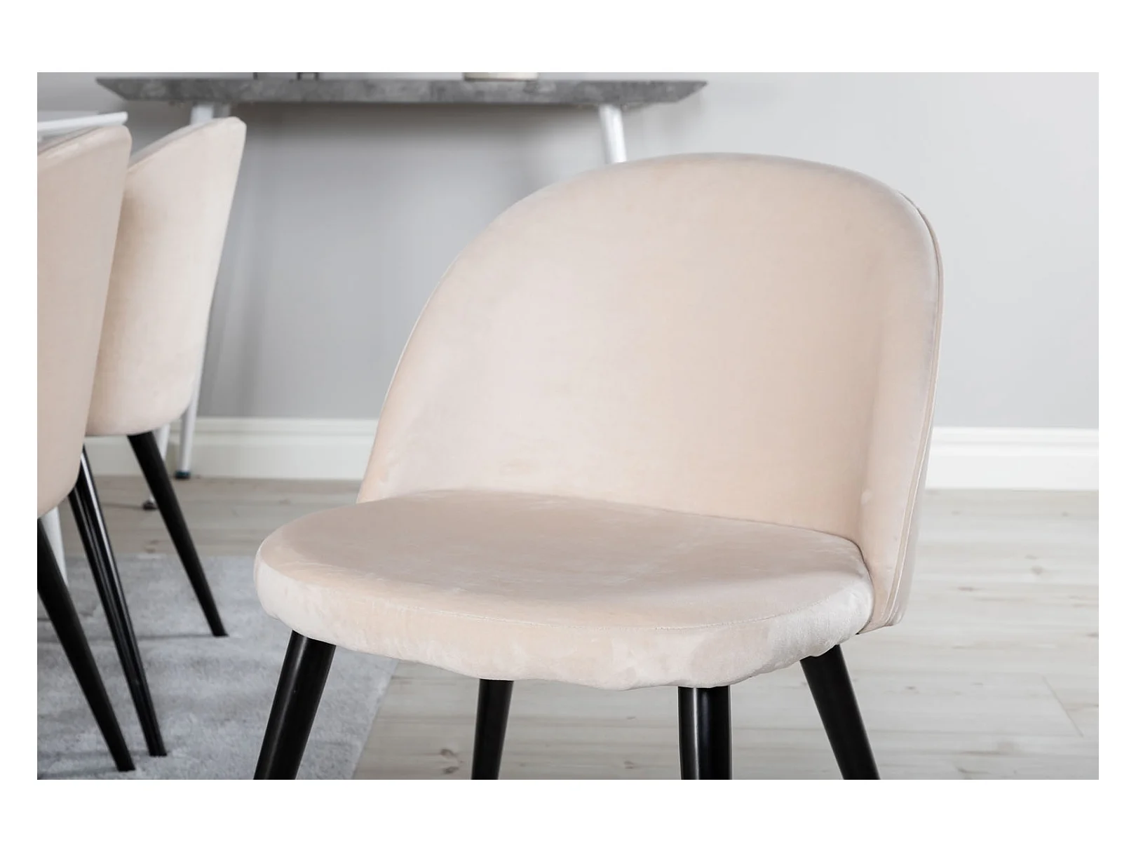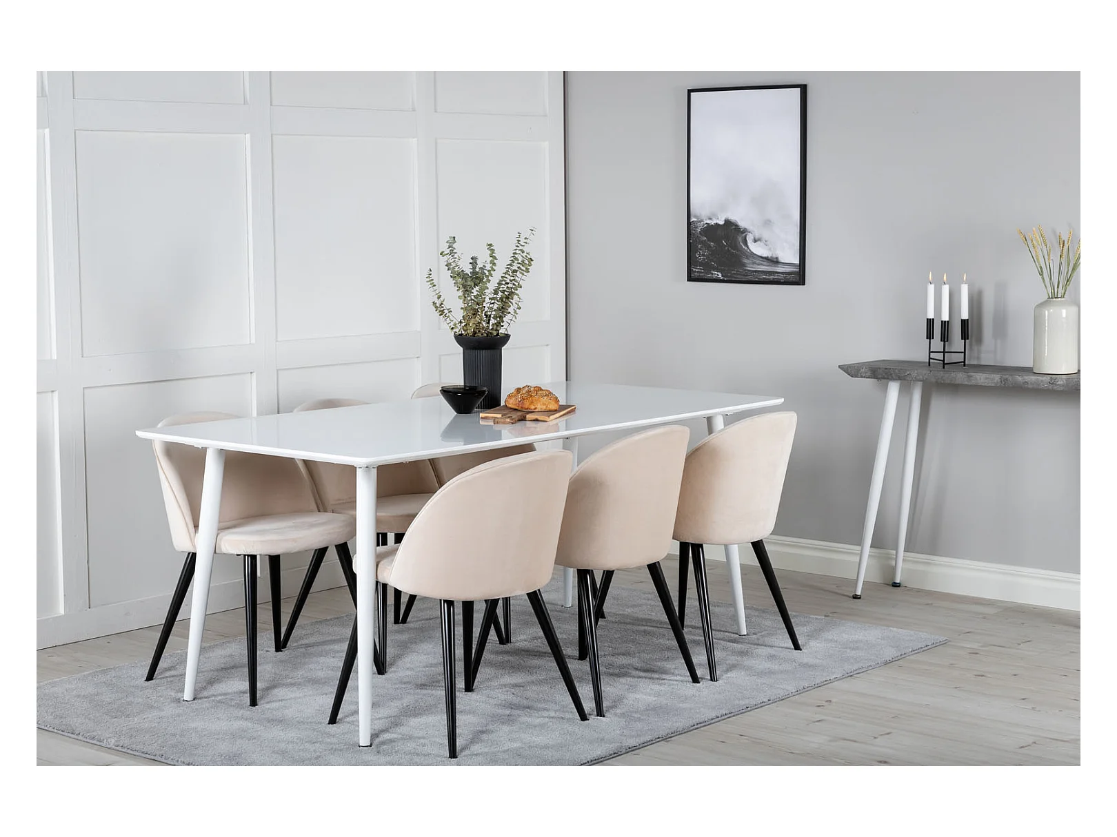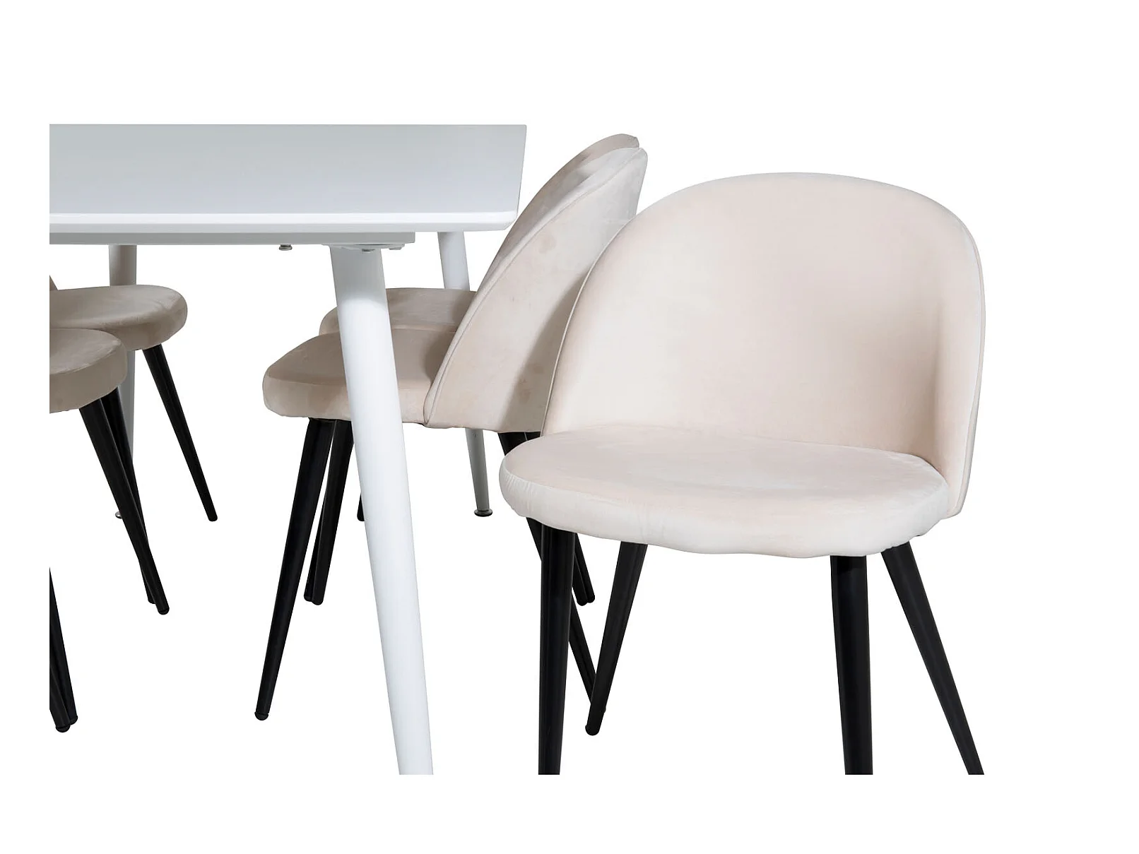 Polar180X90WHWH Essgruppe Esstisch weiß und 6 Velvet Esszimmerstühle Velour beige, schwarz.