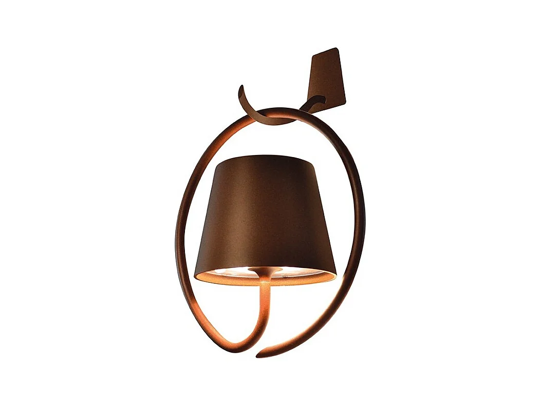 Poldina Corten LED-Wandleuchte mit Haken, wiederaufladbar und dimmbar, mit einer Akkulaufzeit von bis zu 12 Stunden.