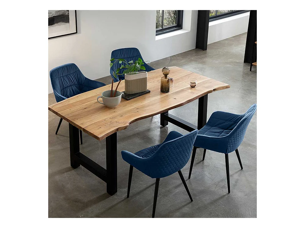 Polster Armlehnenstuhl in Blau Bezug aus Samt