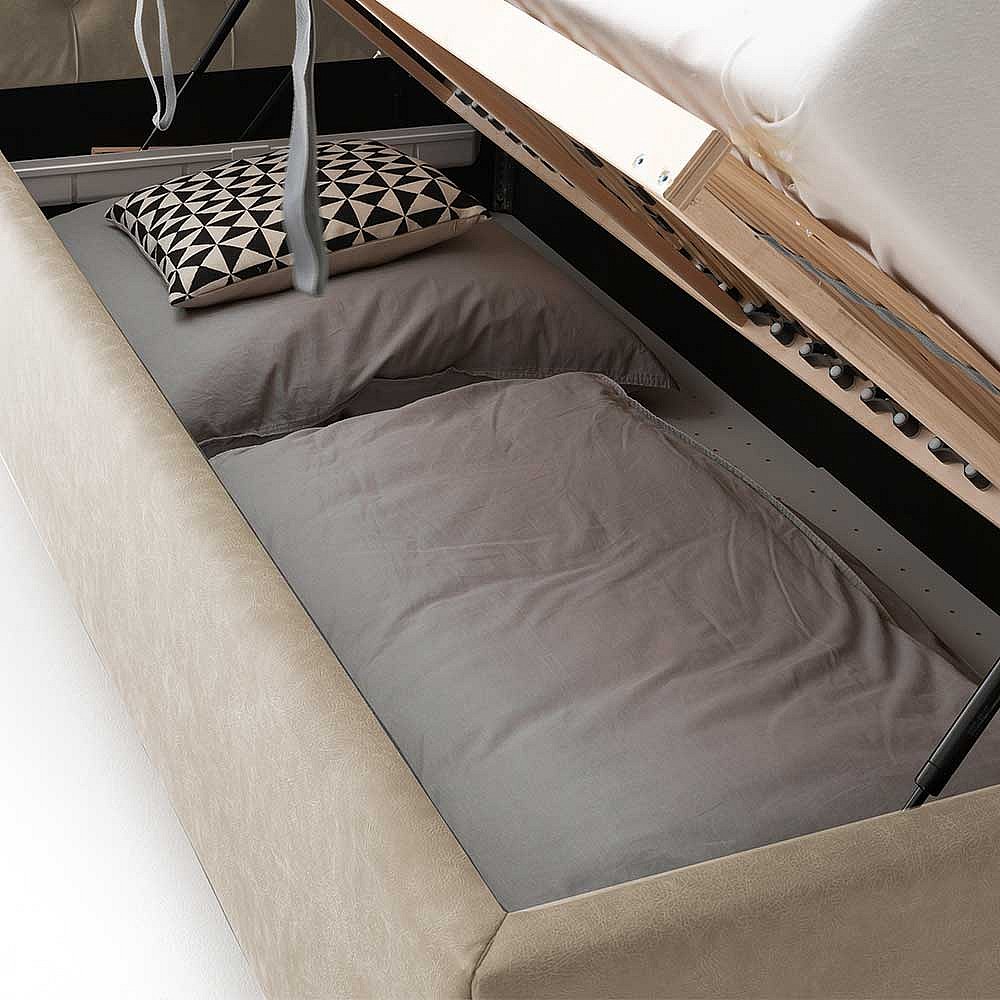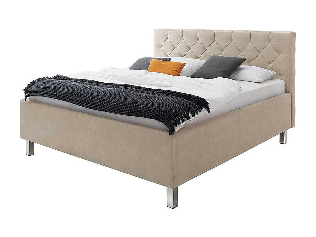 Polster Bett Microfaser in Beige Chromfarben