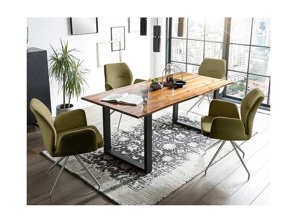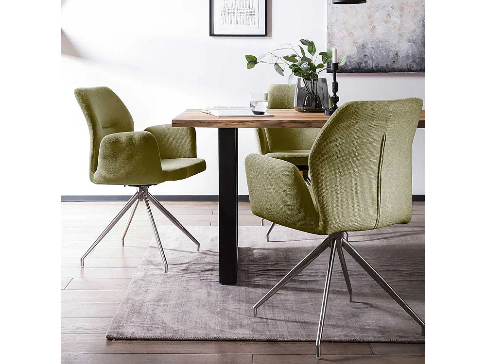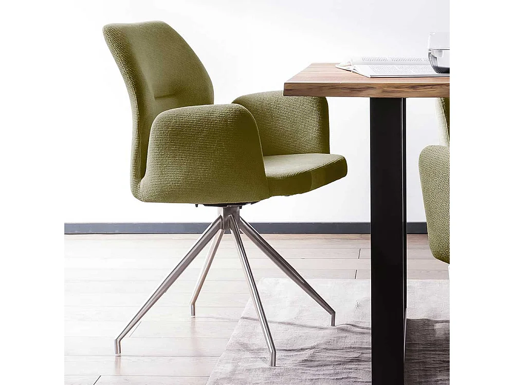 Polster Drehstuhl für Esstisch Oliv Grün und Silber