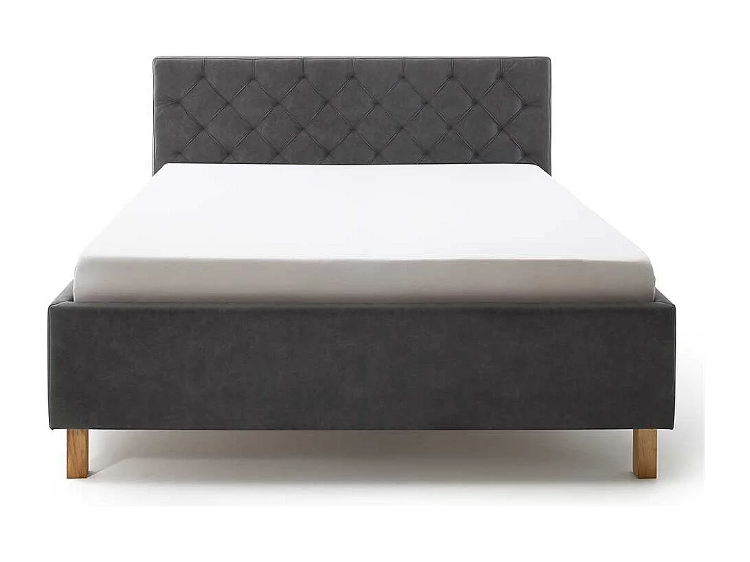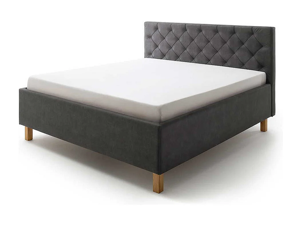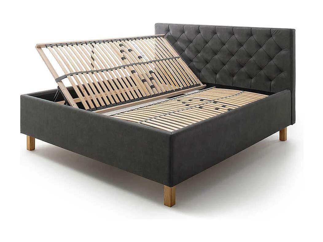 Polster Stauraumbett in Anthrazit Vierfußgestell aus Eiche