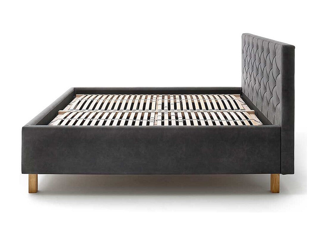 Polster Stauraumbett in Anthrazit Vierfu�gestell aus Eiche