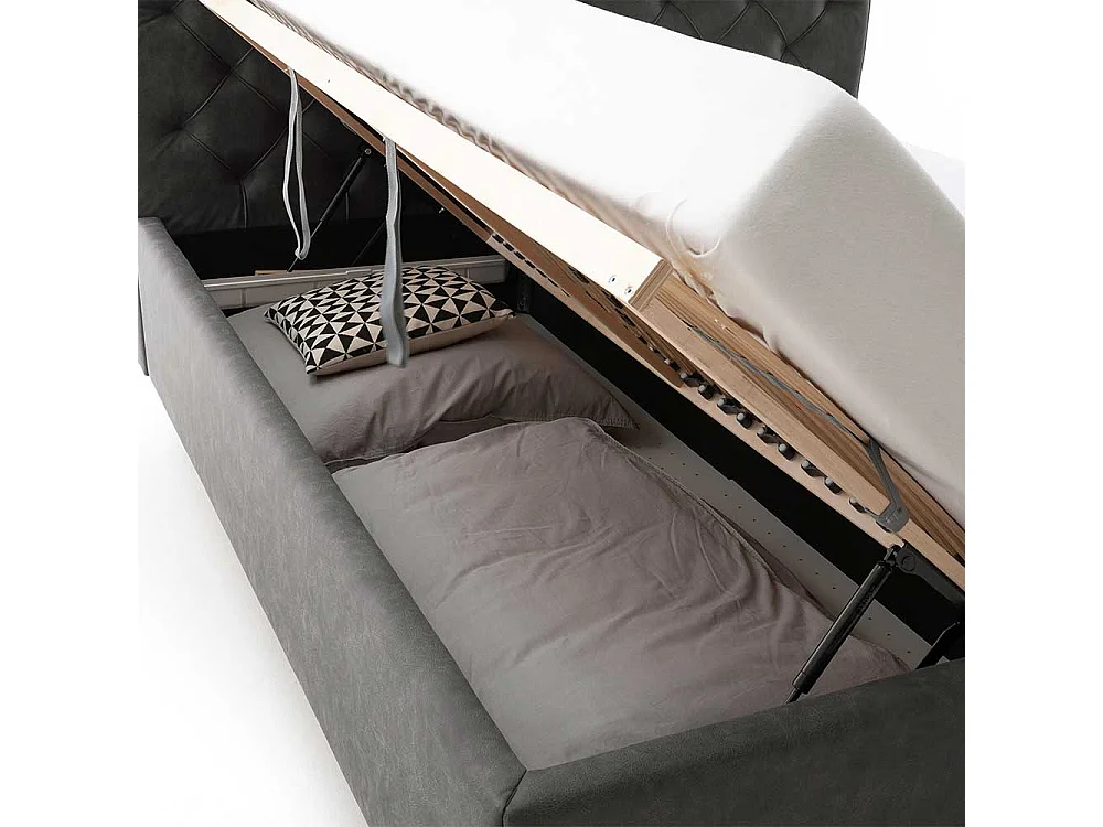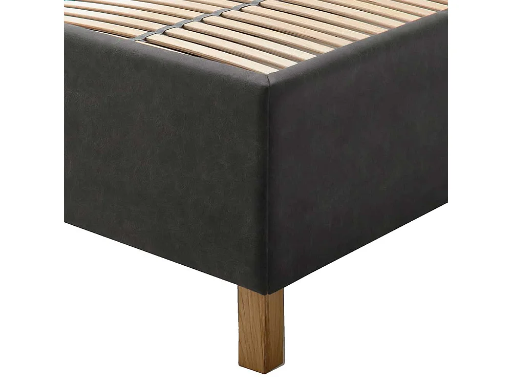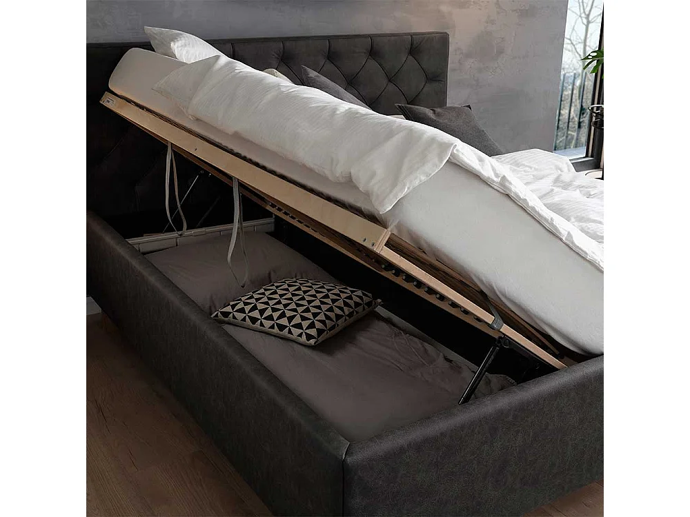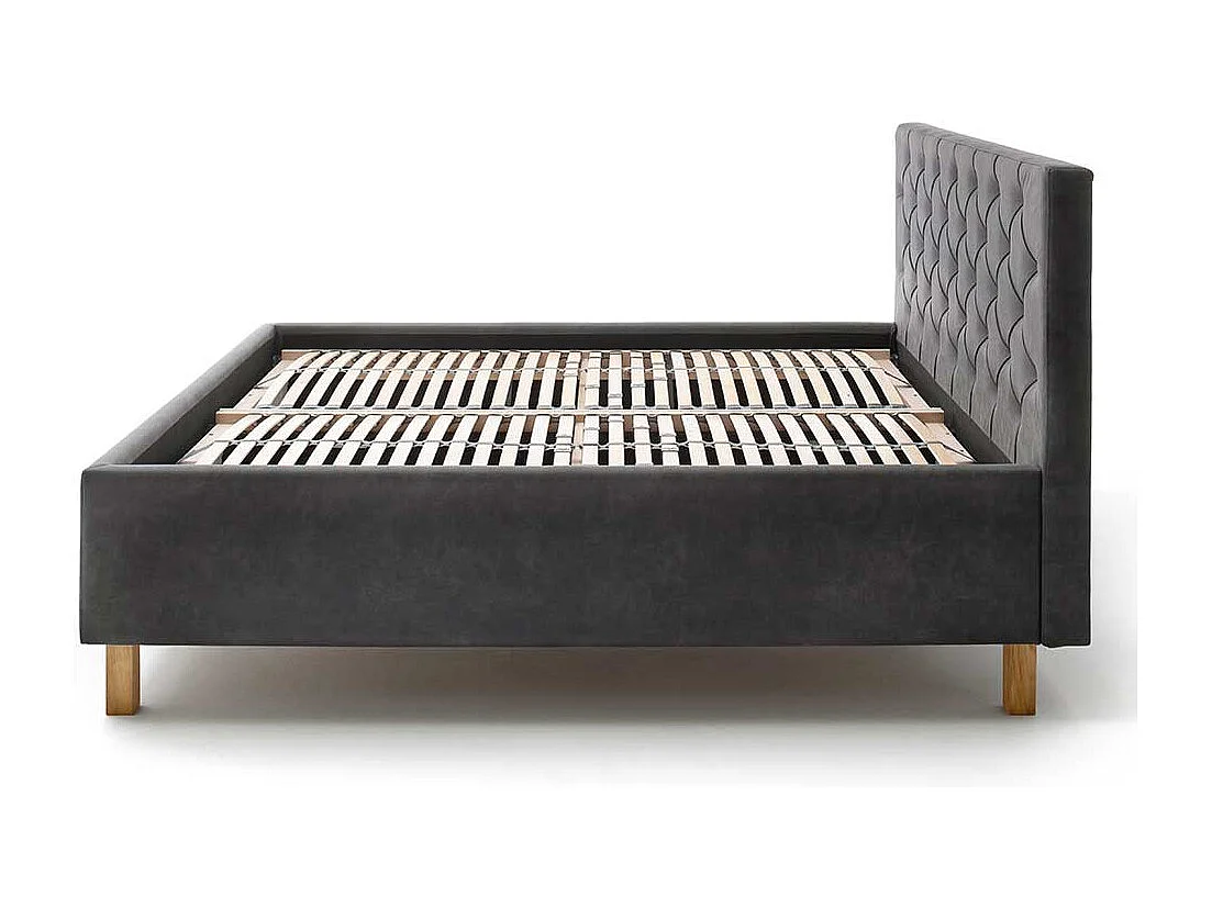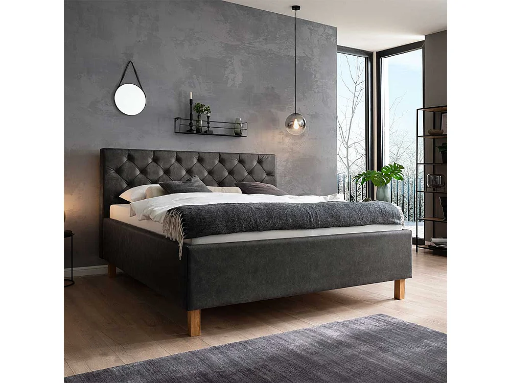 Polster Stauraumbett in Anthrazit Vierfußgestell aus Eiche