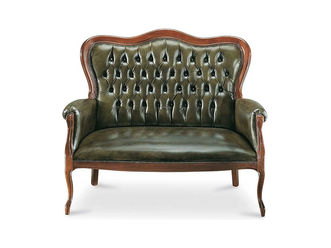 Polsterbank im Chesterfield Look Dunkelgrün Nussbaum