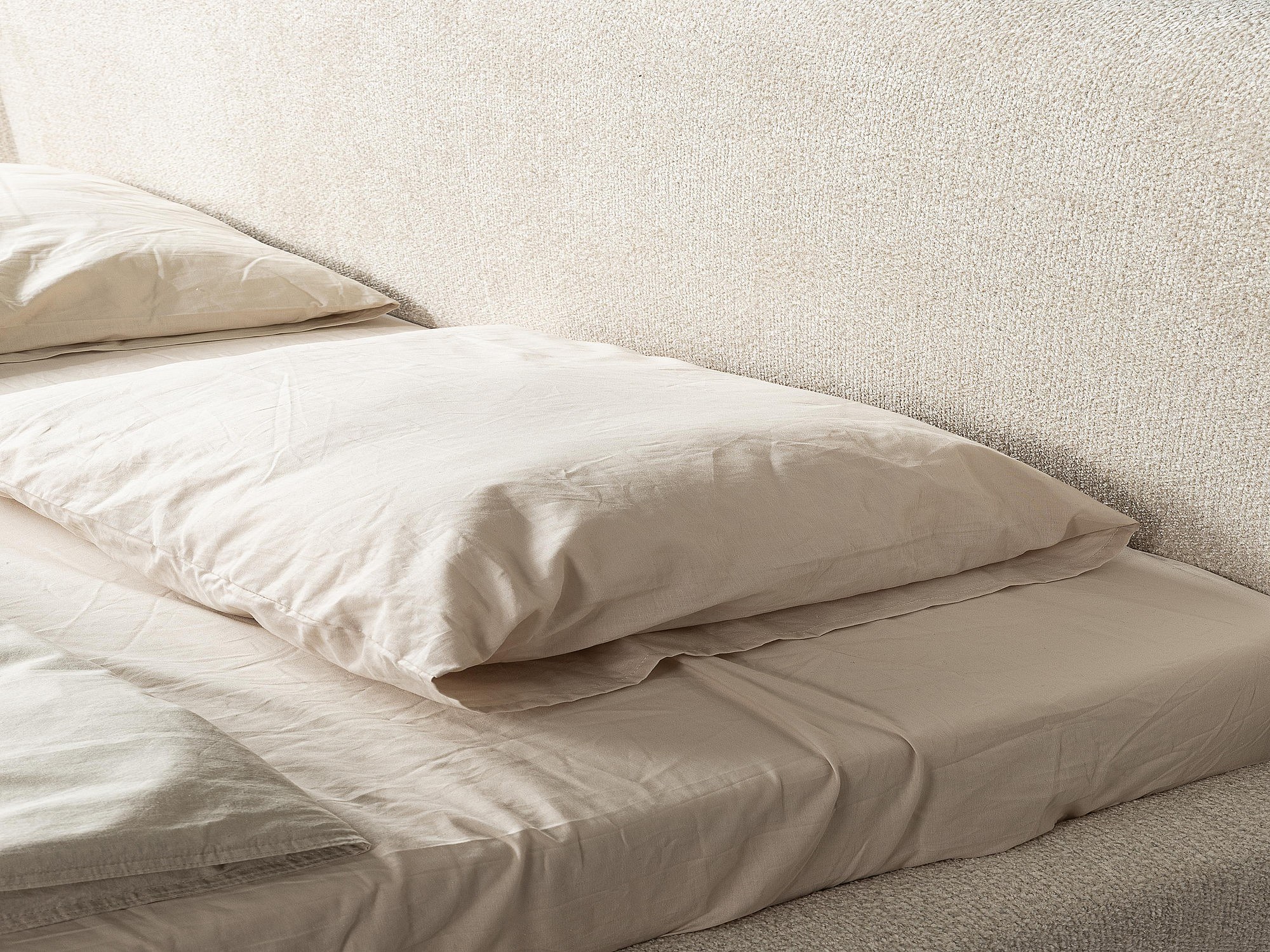 Polsterbed mit Stauraum - 208 x 224 - Chenille - Beige - MAKANA