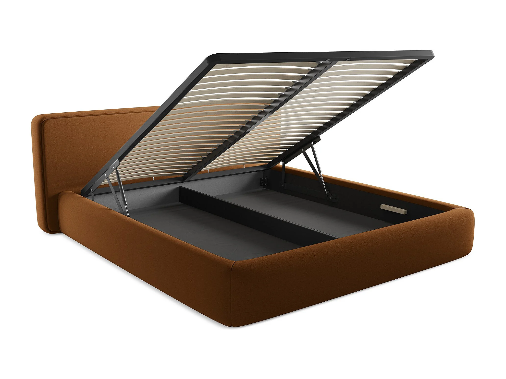 Polsterbed mit Stauraum - 220 x 225 - Bouclé - Terrakotta - KIANA