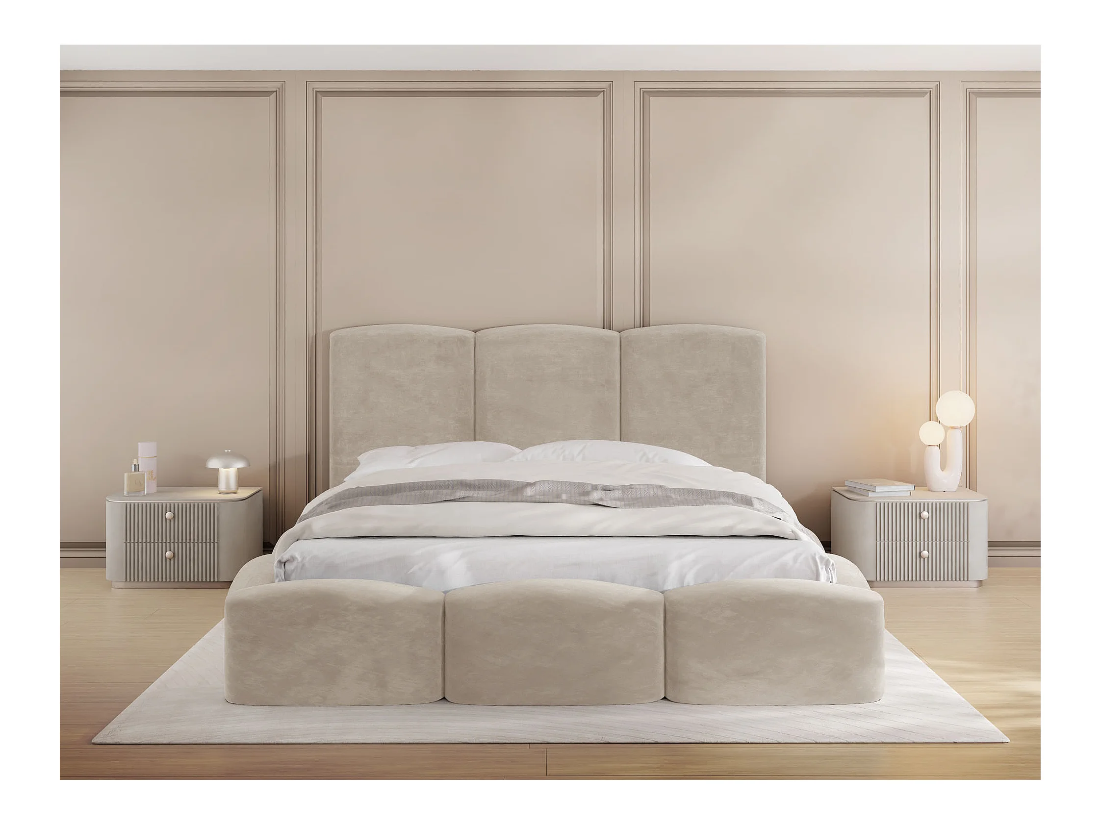 Polsterbett 120x200 – Bettkasten mit Lattenrost – Boucle oder Samt Creme – Hohes Kopfteil – Bettgestell ohne Matratze – Harmony – Modernes Doppelbett – Beige
