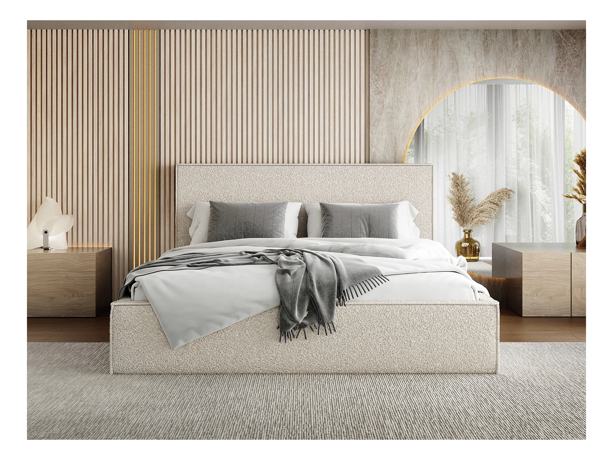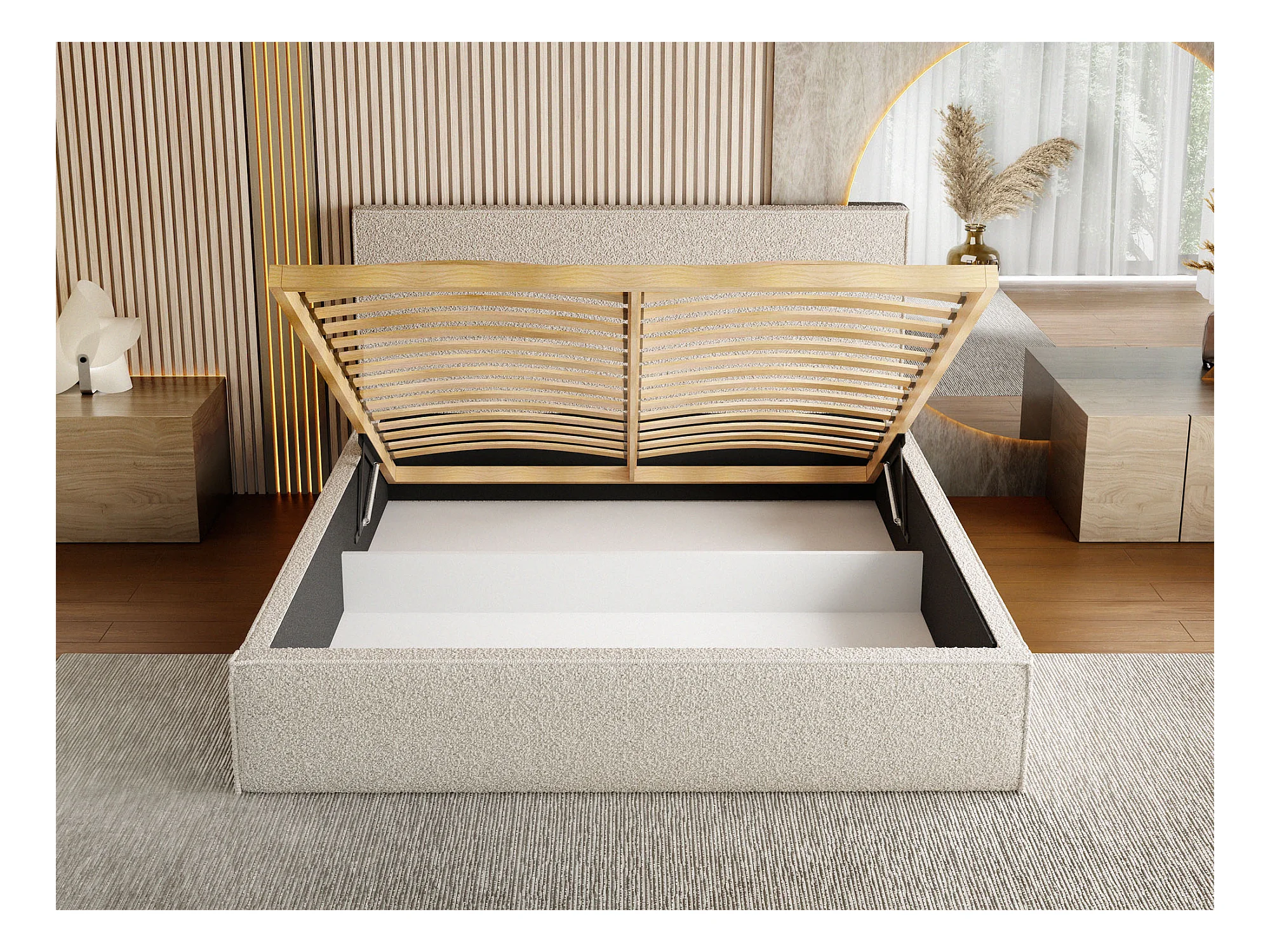 Polsterbett 120x200 – Bettkasten mit Lattenrost – Boucle Creme – Hohes Kopfteil – Bettgestell ohne Matratze – Terra Slim – Modernes Doppelbett – Beige