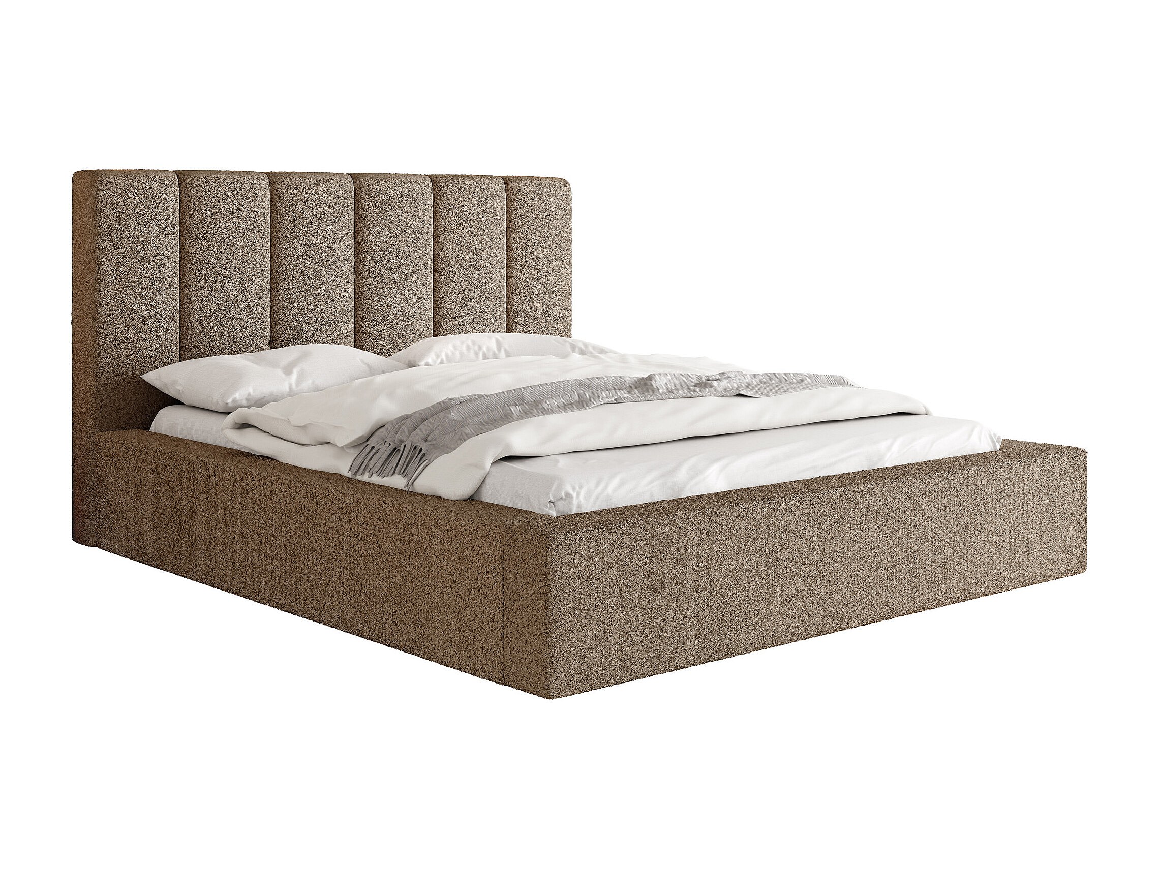 Polsterbett 120x200 – Bettkasten mit Lattenrost – Boucle oder Samt – Hohes Kopfteil – Bettgestell ohne Matratze – Amira – Modernes Doppelbett – Braun