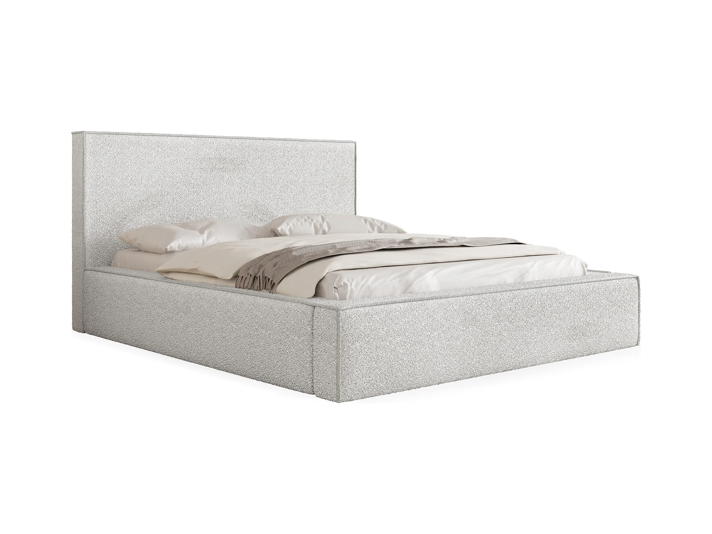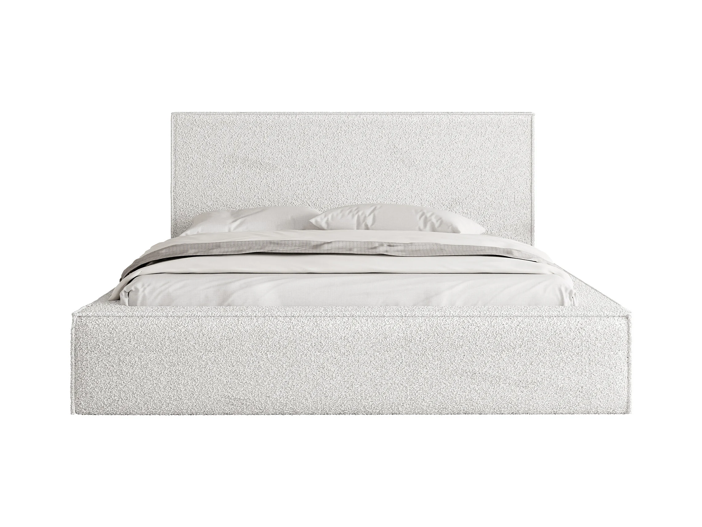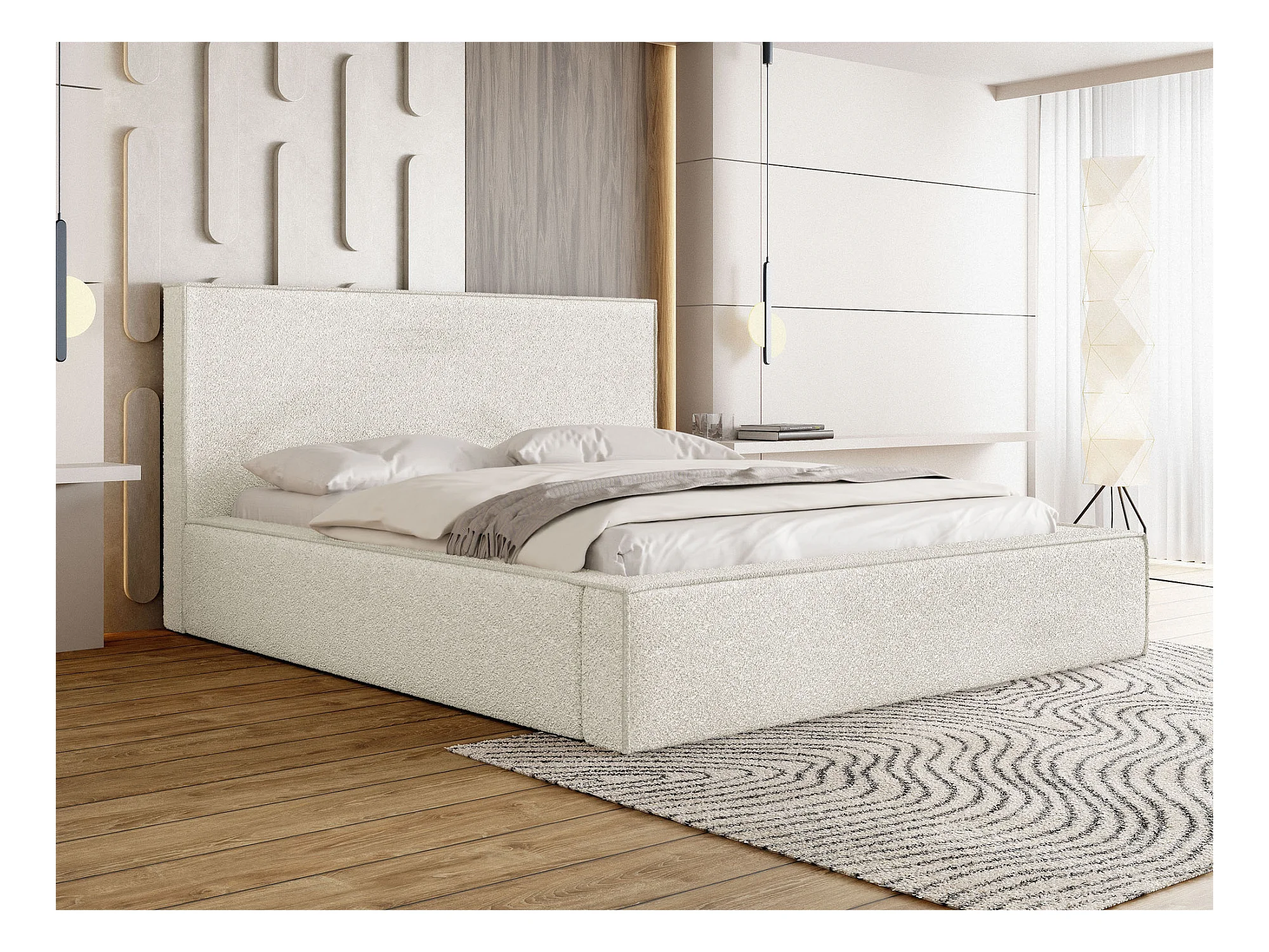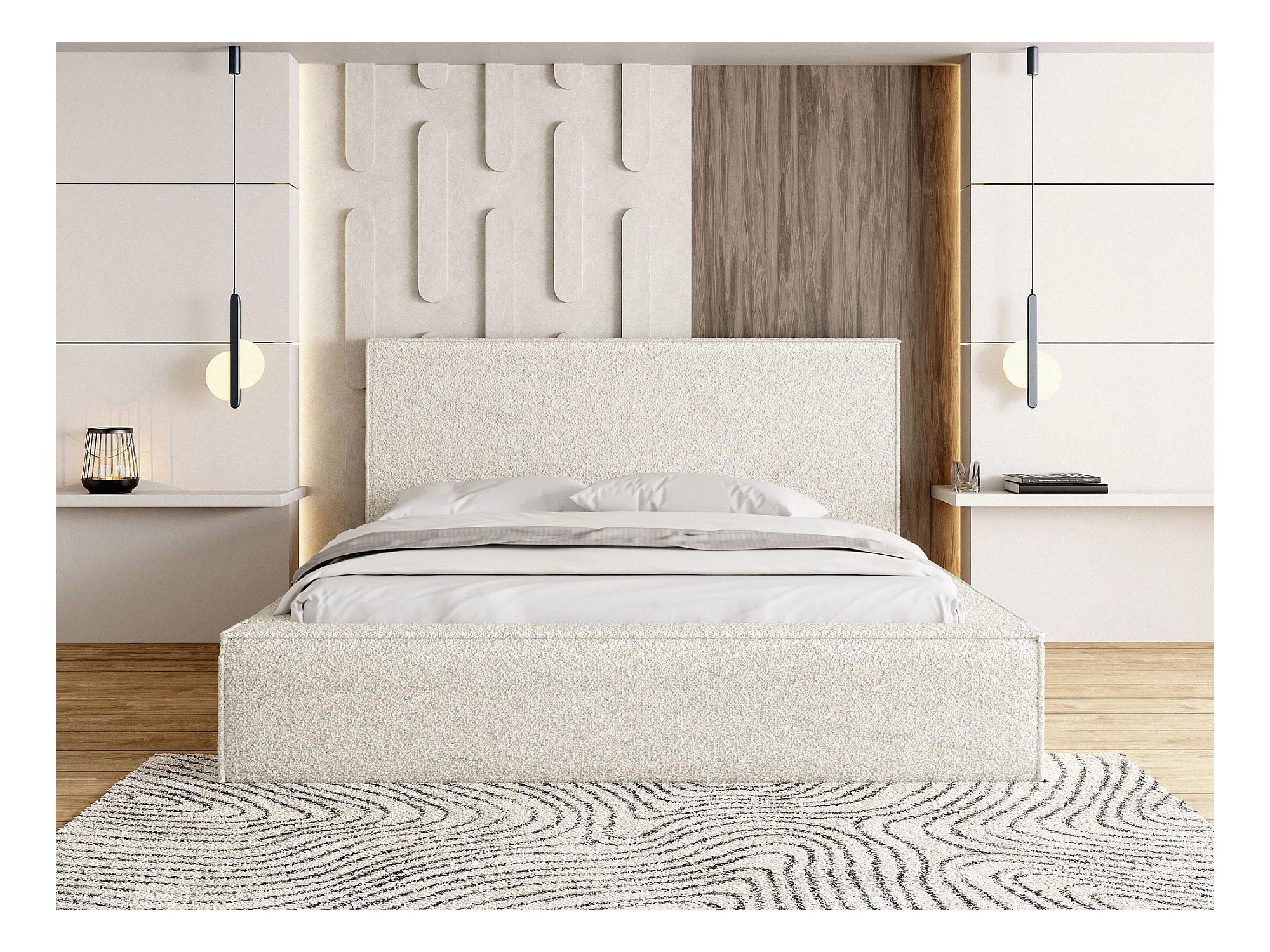 Polsterbett 120x200 – Bettkasten mit Lattenrost – Bouclé oder Samt Weiß – Hohes Kopfteil – Bettgestell ohne Matratze – Terra – Modernes Doppelbett – Creme