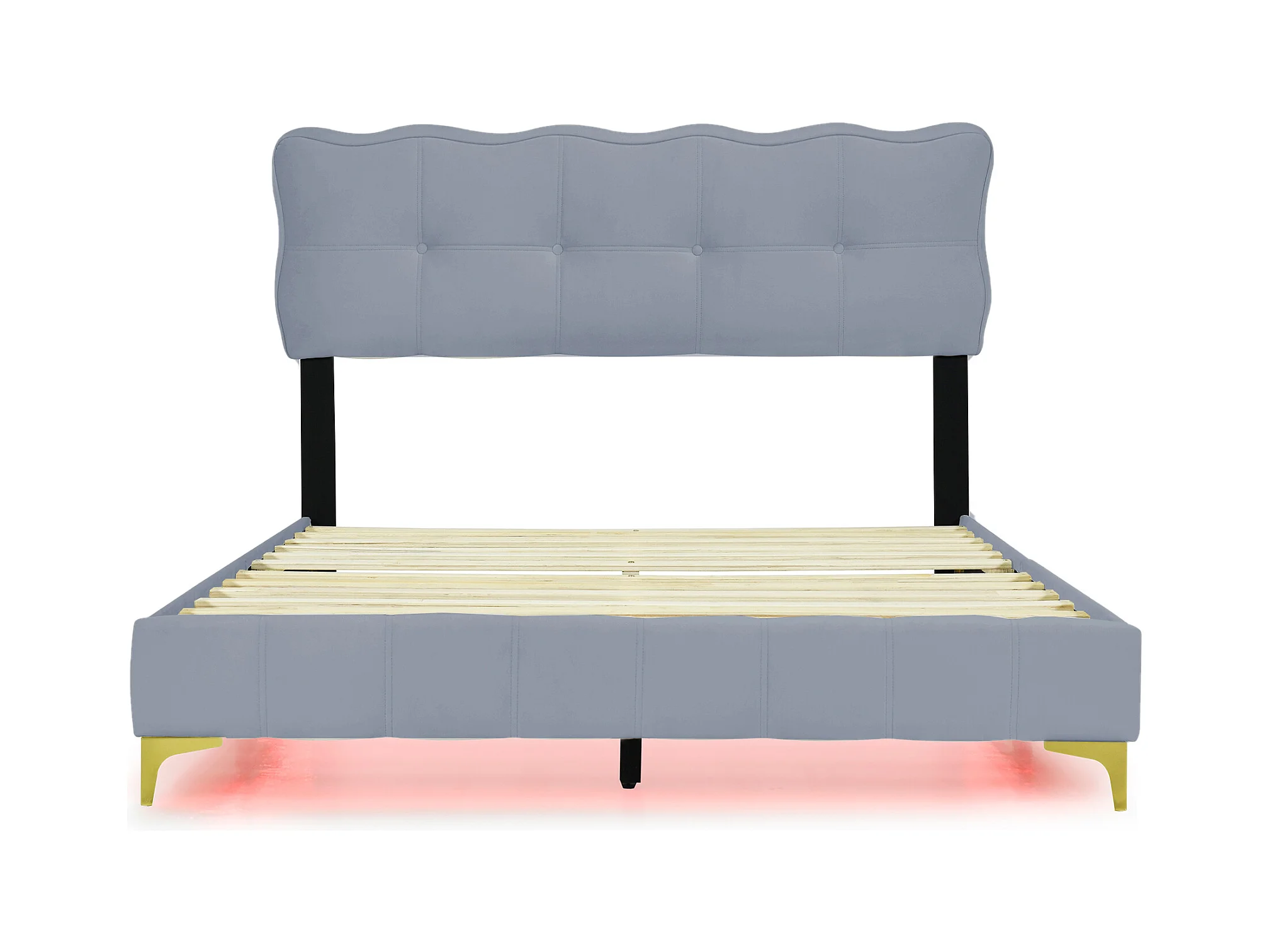 Polsterbett 140 x 200 cm mit Kopfteil – LEDs – Samt – Grau