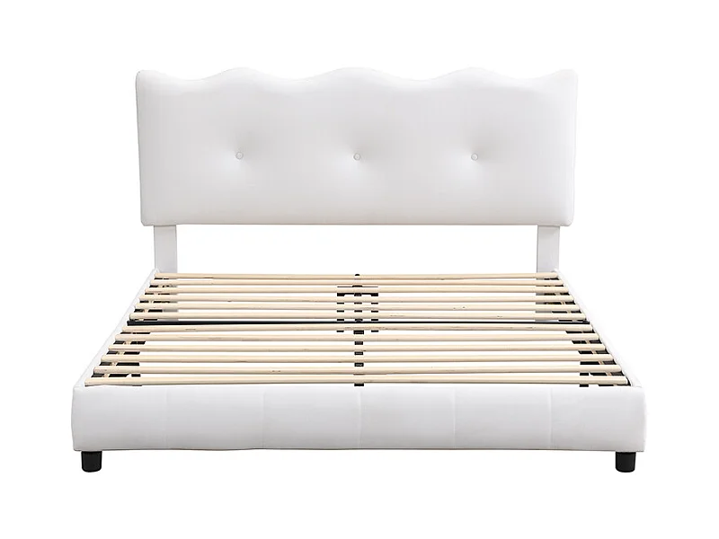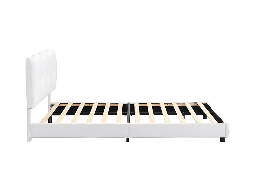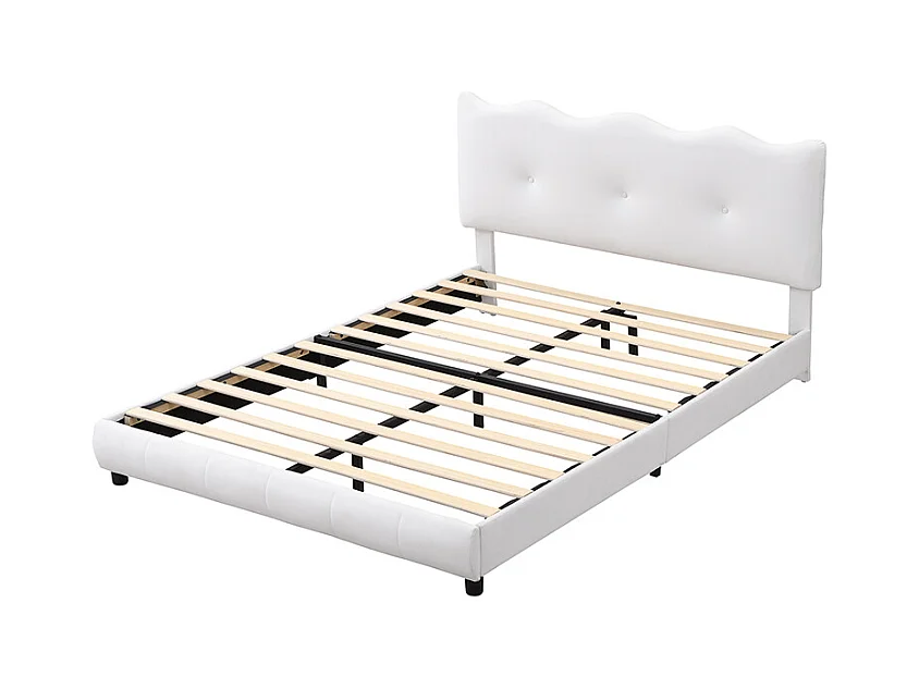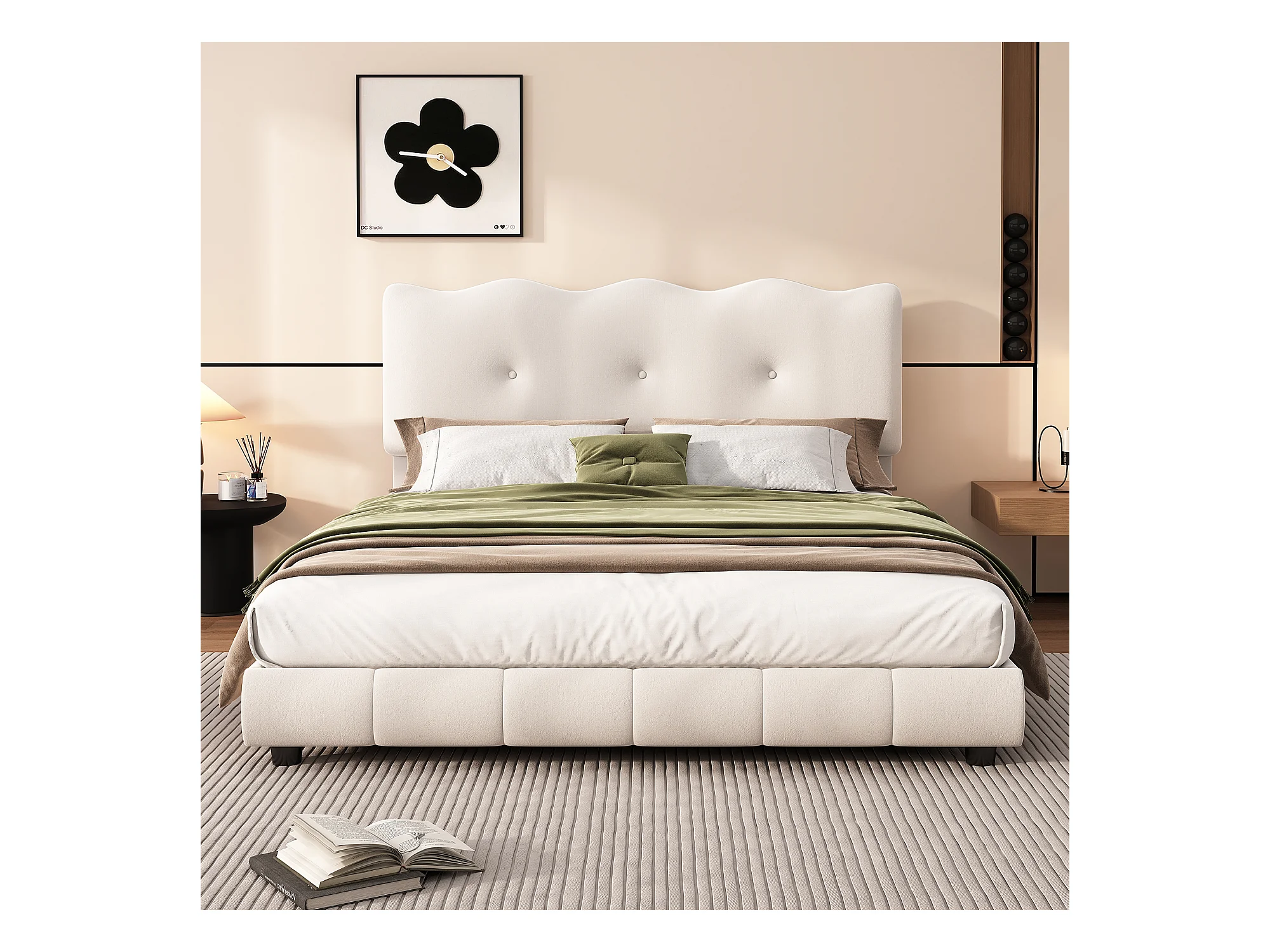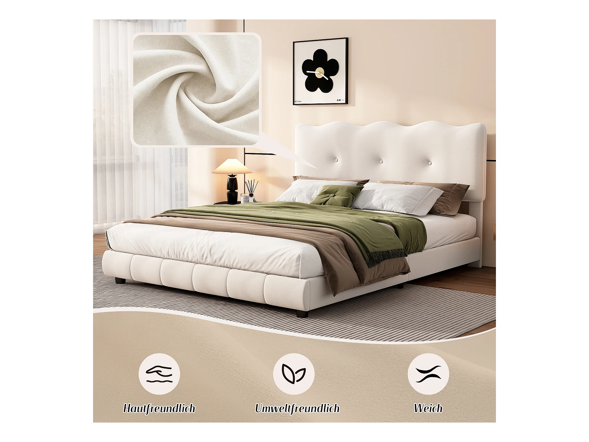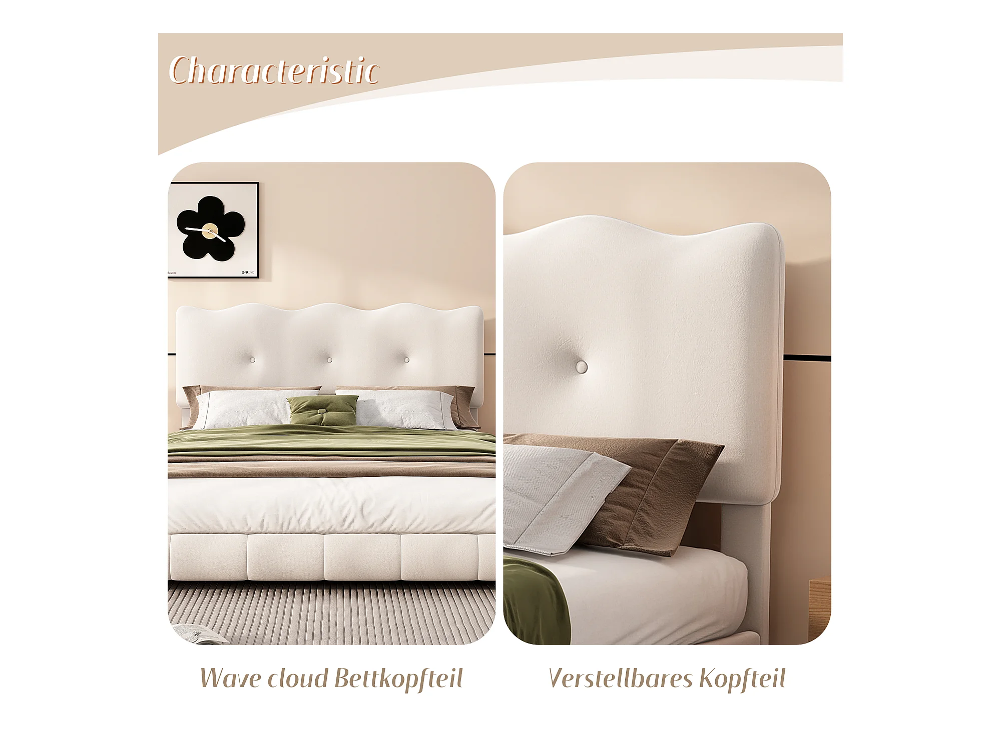 Polsterbett 140 x 200 cm mit verstellbarem Kopfteil – Wellen- und Wolkendesign – Samt – Weiß (ohne Matratze)