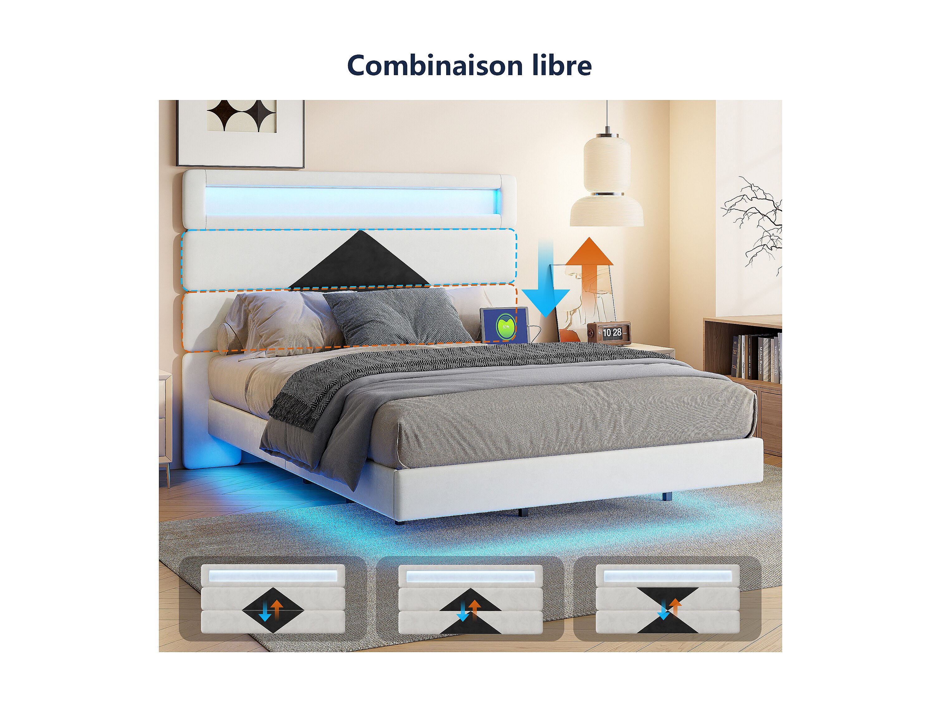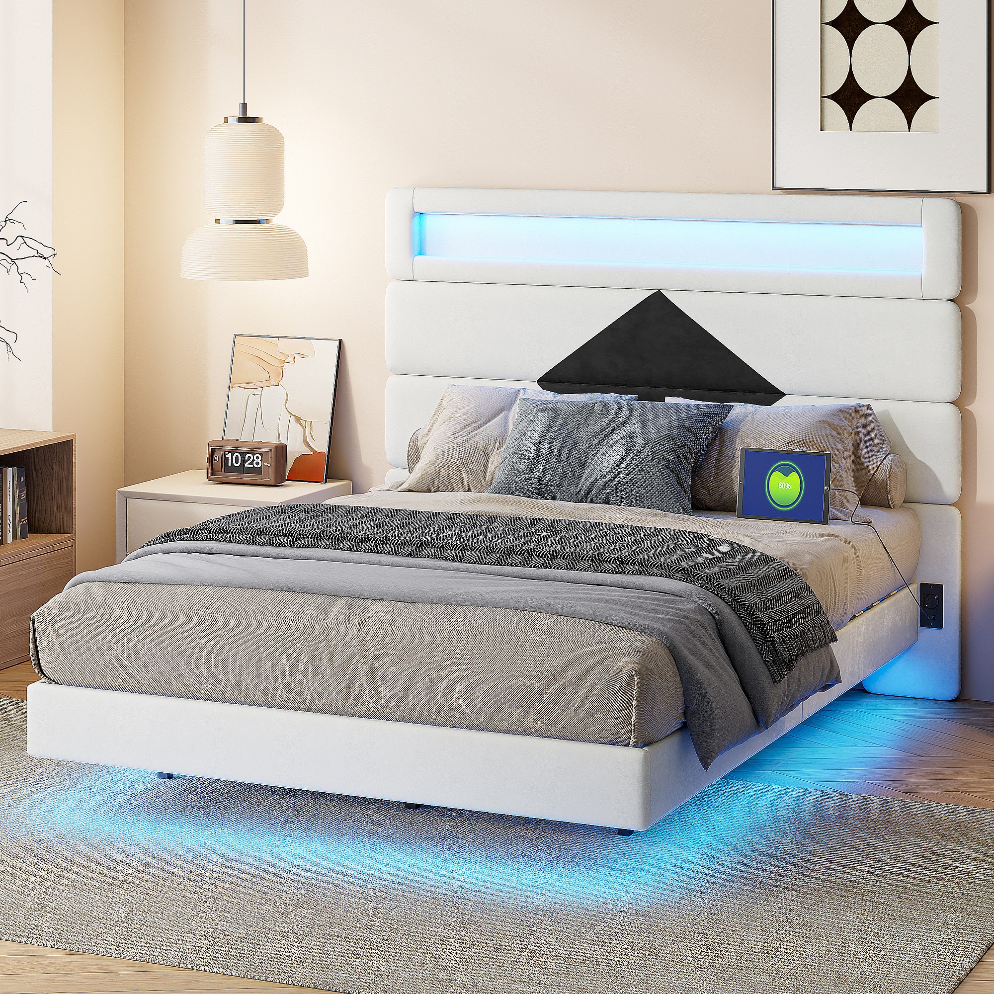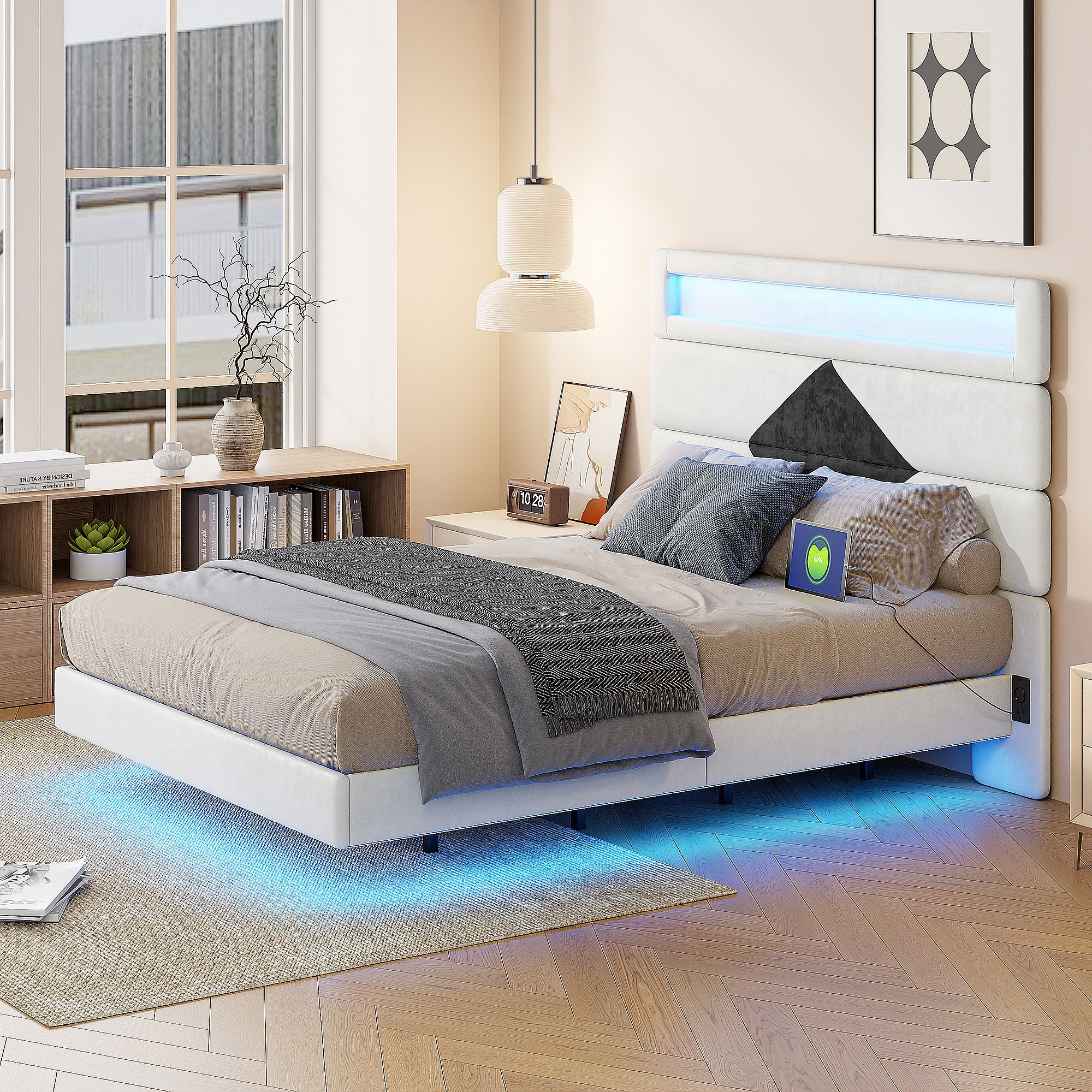 Polsterbett 140x190cm mit USB, Doppelbett mit LED, Stauraumbett mit Rautenkopfteil, Samt