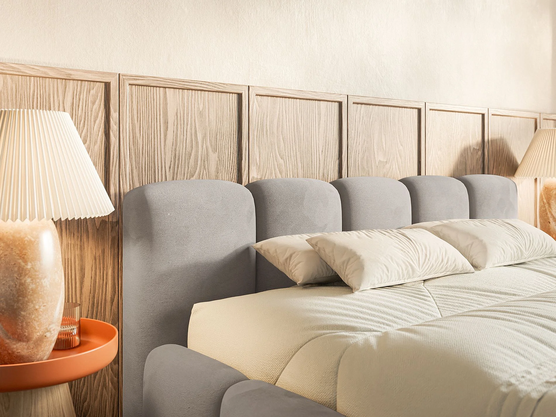 Polsterbett – 140x200 cm – hellgrau – wasserabweisender Samt - CLOUDY LOW