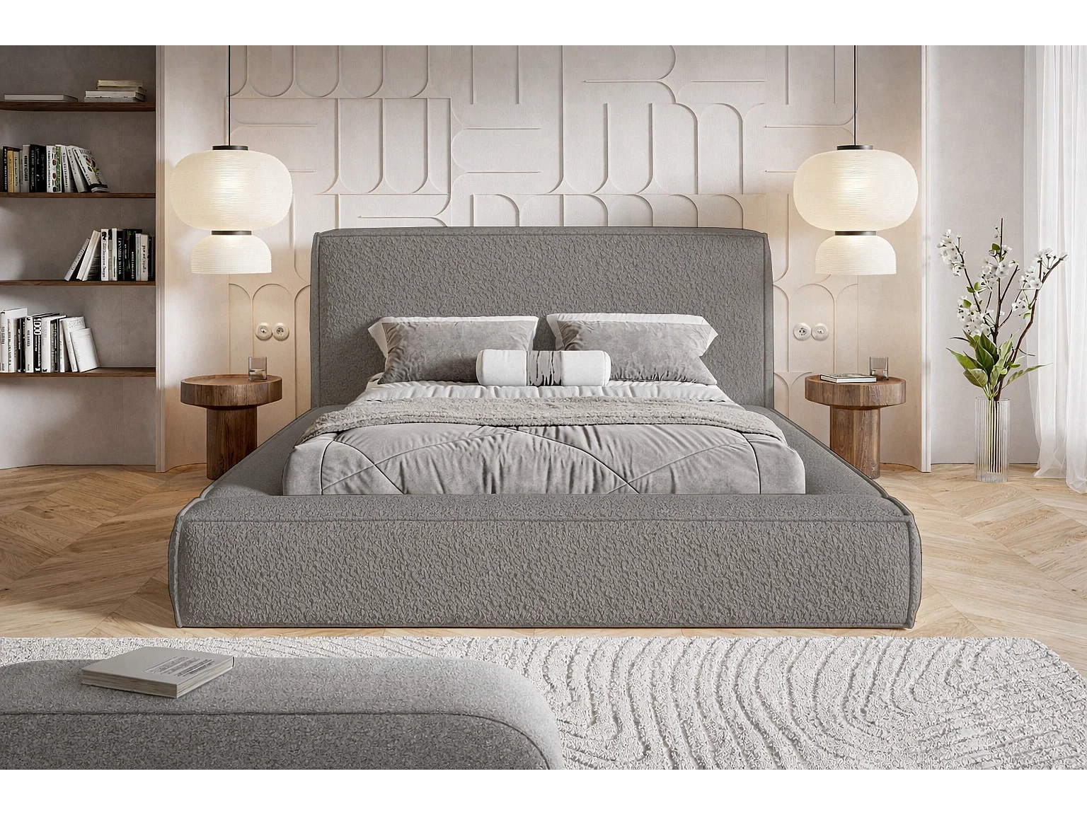 Polsterbett 140x200 Karano mit Bettkasten - Lattenrost, Samtstoff - Grau (Catch Me 25)
