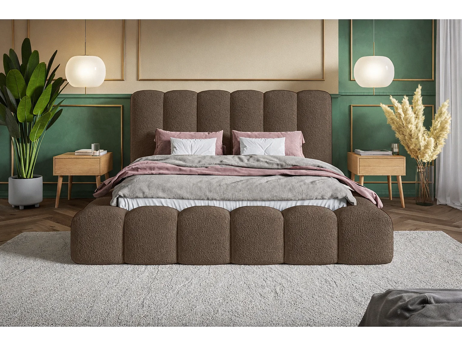 Polsterbett 140x200 Madeno mit Bettkasten - hochwertigem Schaumstoff, Metall-Lattenrost - Bouclé, Braun (Catch me 6)