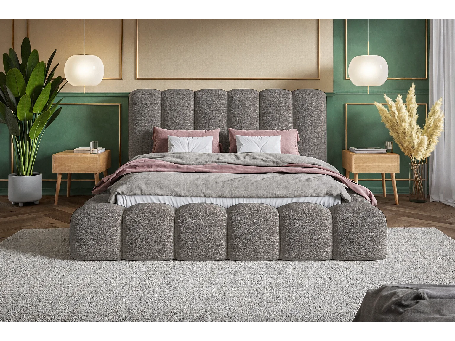 Polsterbett 140x200 Madeno mit Bettkasten - hochwertigem Schaumstoff, Metall-Lattenrost - Bouclé, Grau (Catch me 25)
