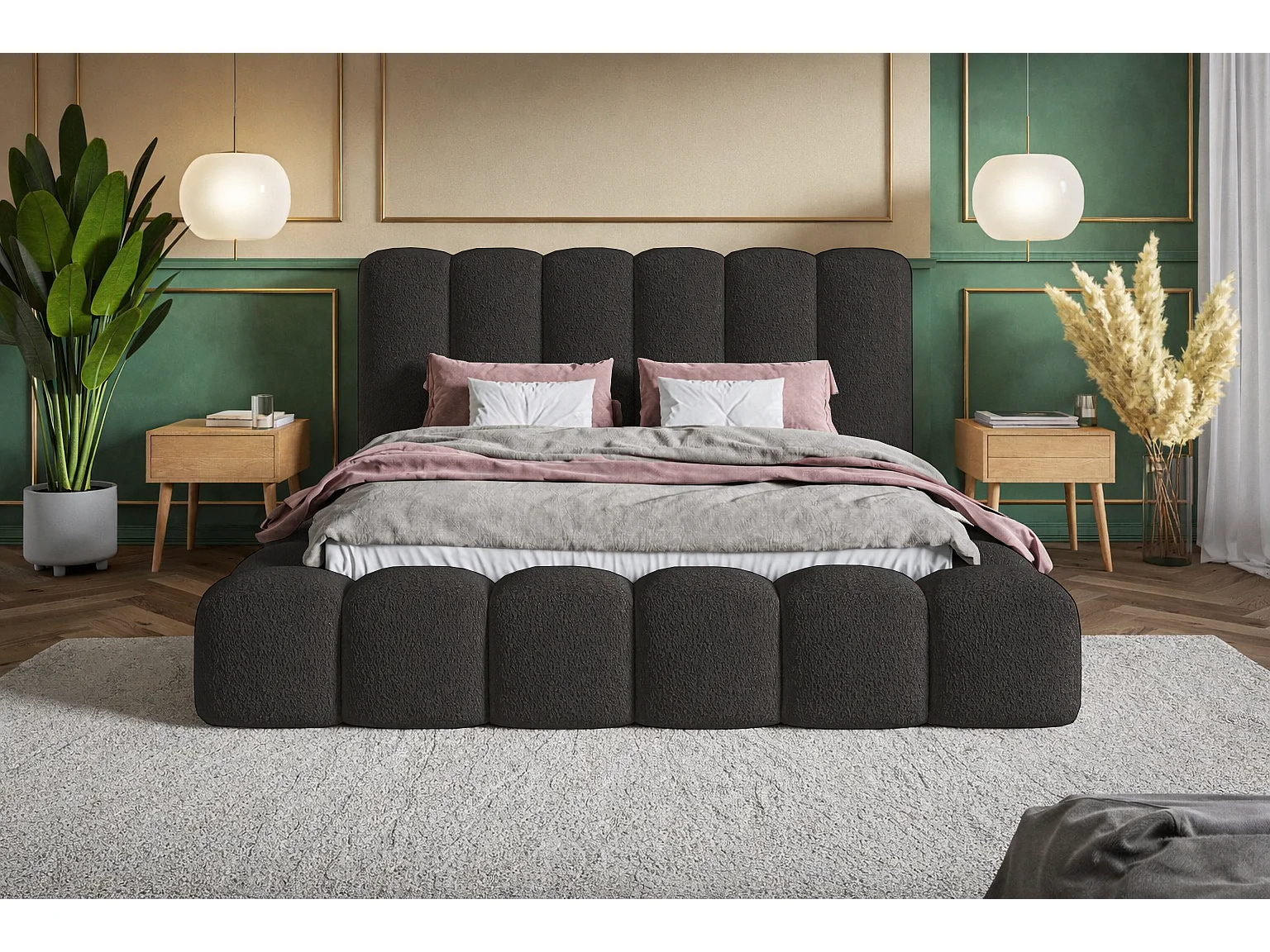 Polsterbett 140x200 Madeno mit Bettkasten - hochwertigem Schaumstoff, Metall-Lattenrost - Bouclé, Schwarz (Catch me 27)