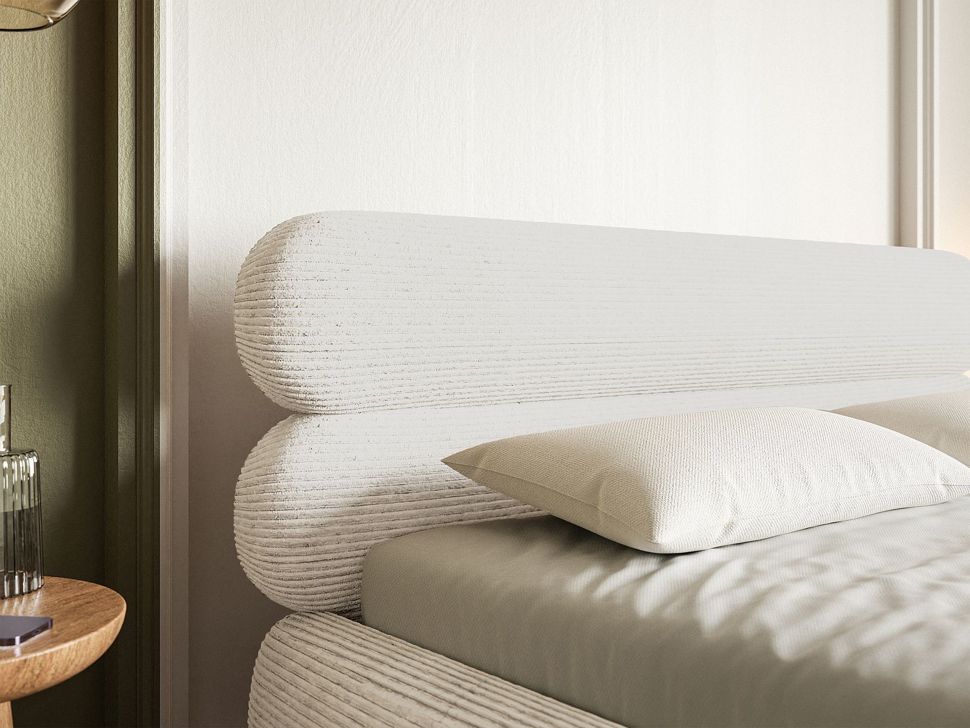 Polsterbett 140x200 mit Bettkasten – Cordstoff – schwarzen Füßen – Creme – ROULE CORD