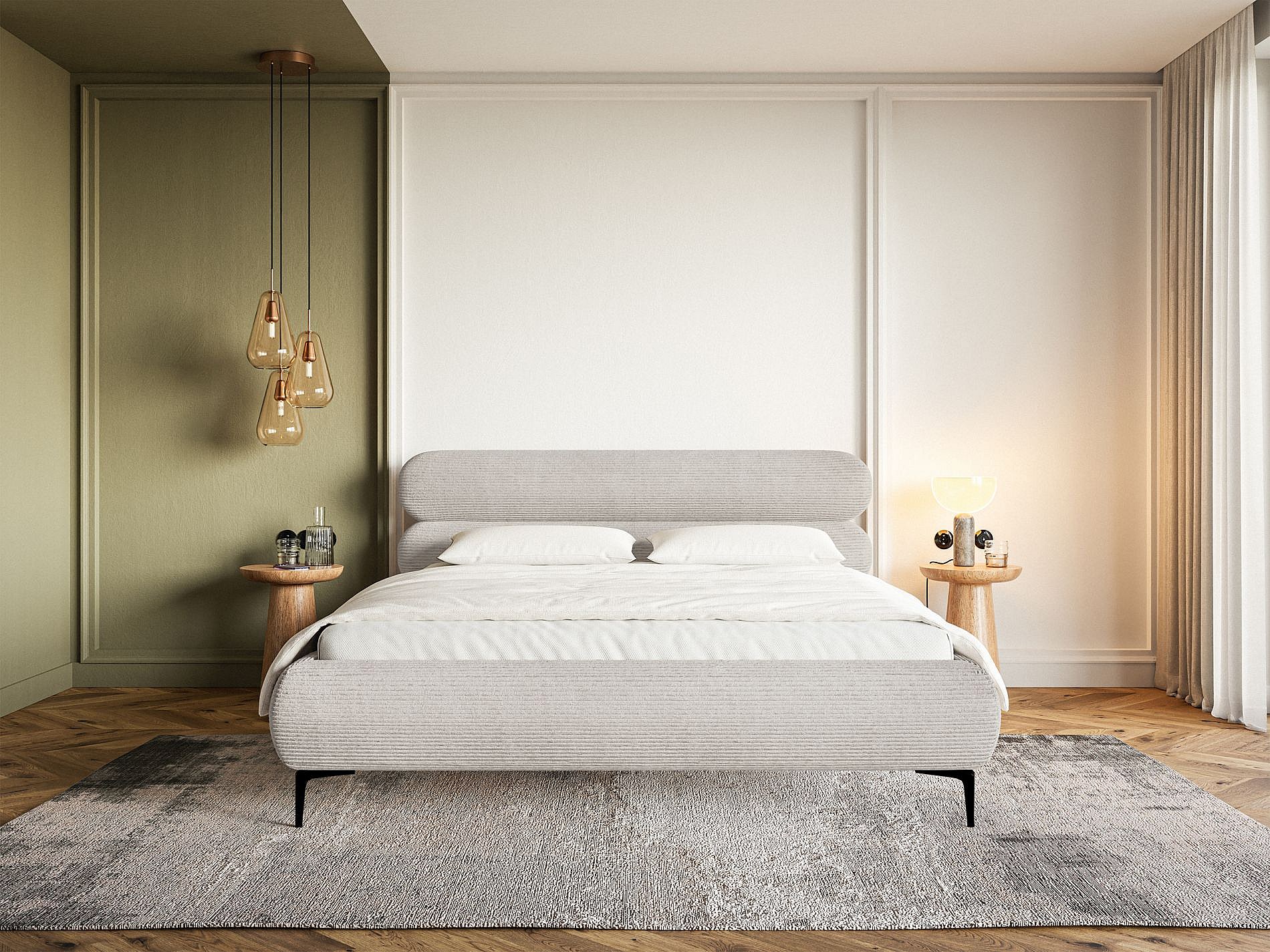 Polsterbett 140x200 mit Bettkasten – Cordstoff – schwarzen Füßen – Greige – ROULE CORD