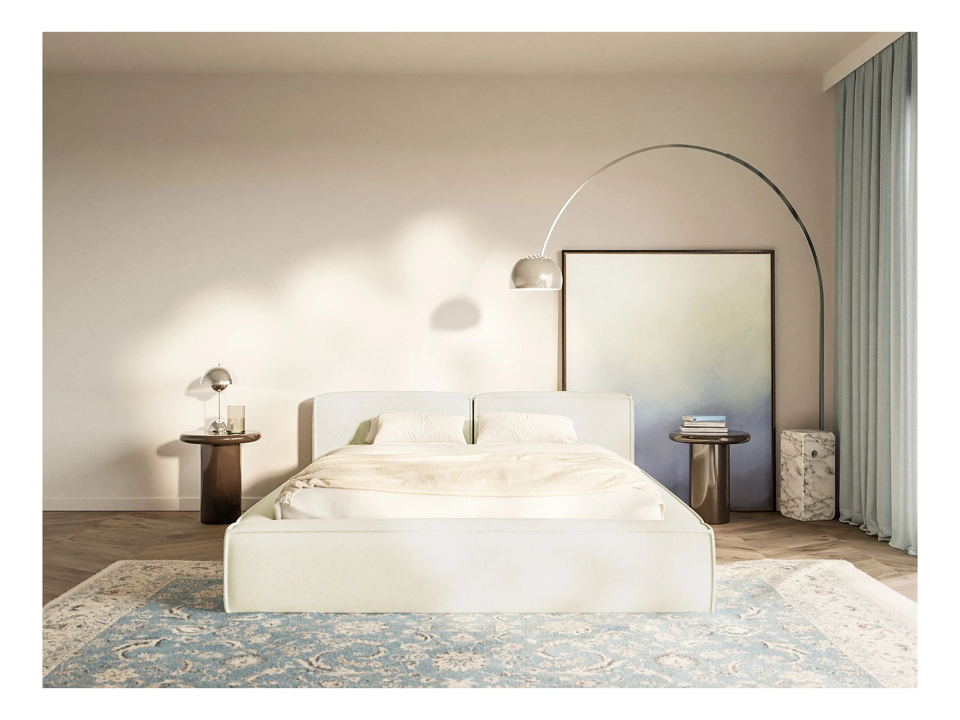 Polsterbett 140x200 mit Bettkasten – Lattenrost – Chenille – creme – TILVES SLIM