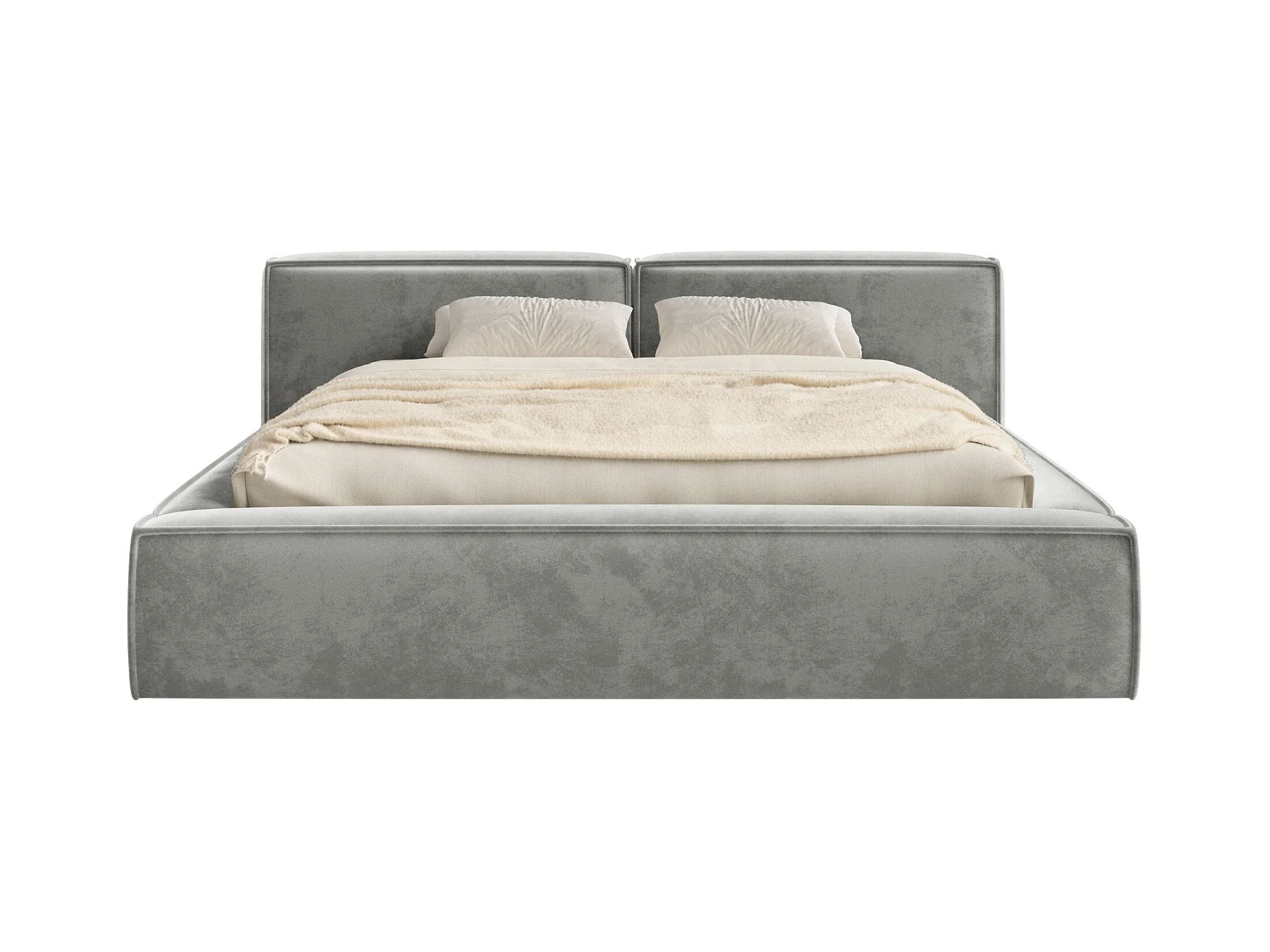 Polsterbett 140x200 mit Bettkasten – Lattenrost – Velours – grau – TILVES LOW
