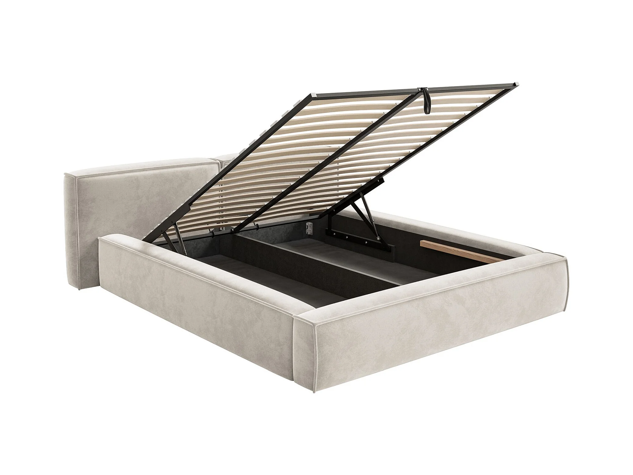 Polsterbett 140x200 mit Bettkasten – Lattenrost – Velours – graubeige – TILVES LOW