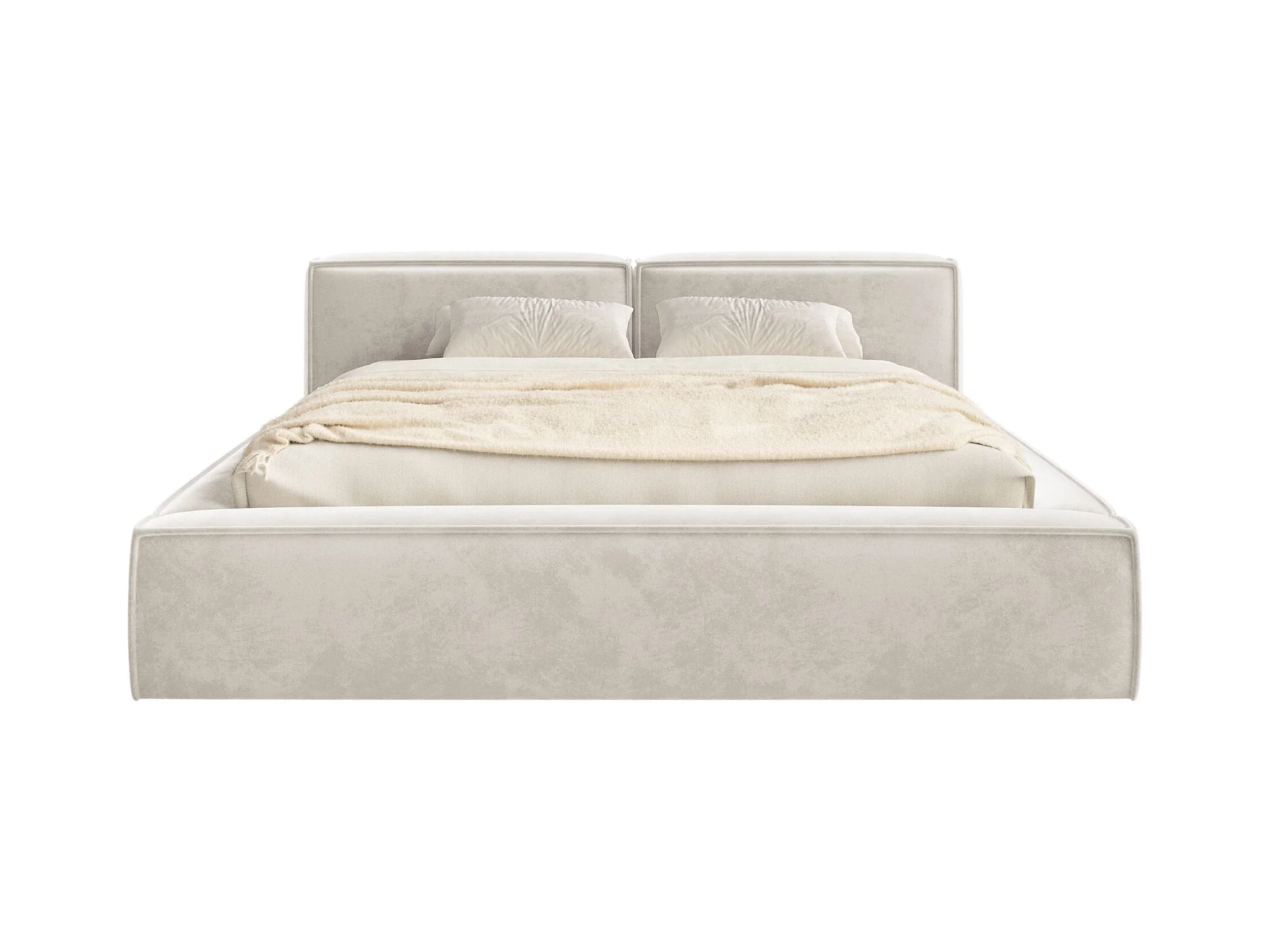 Polsterbett 140x200 mit Bettkasten – Lattenrost – Velours – graubeige – TILVES SLIM