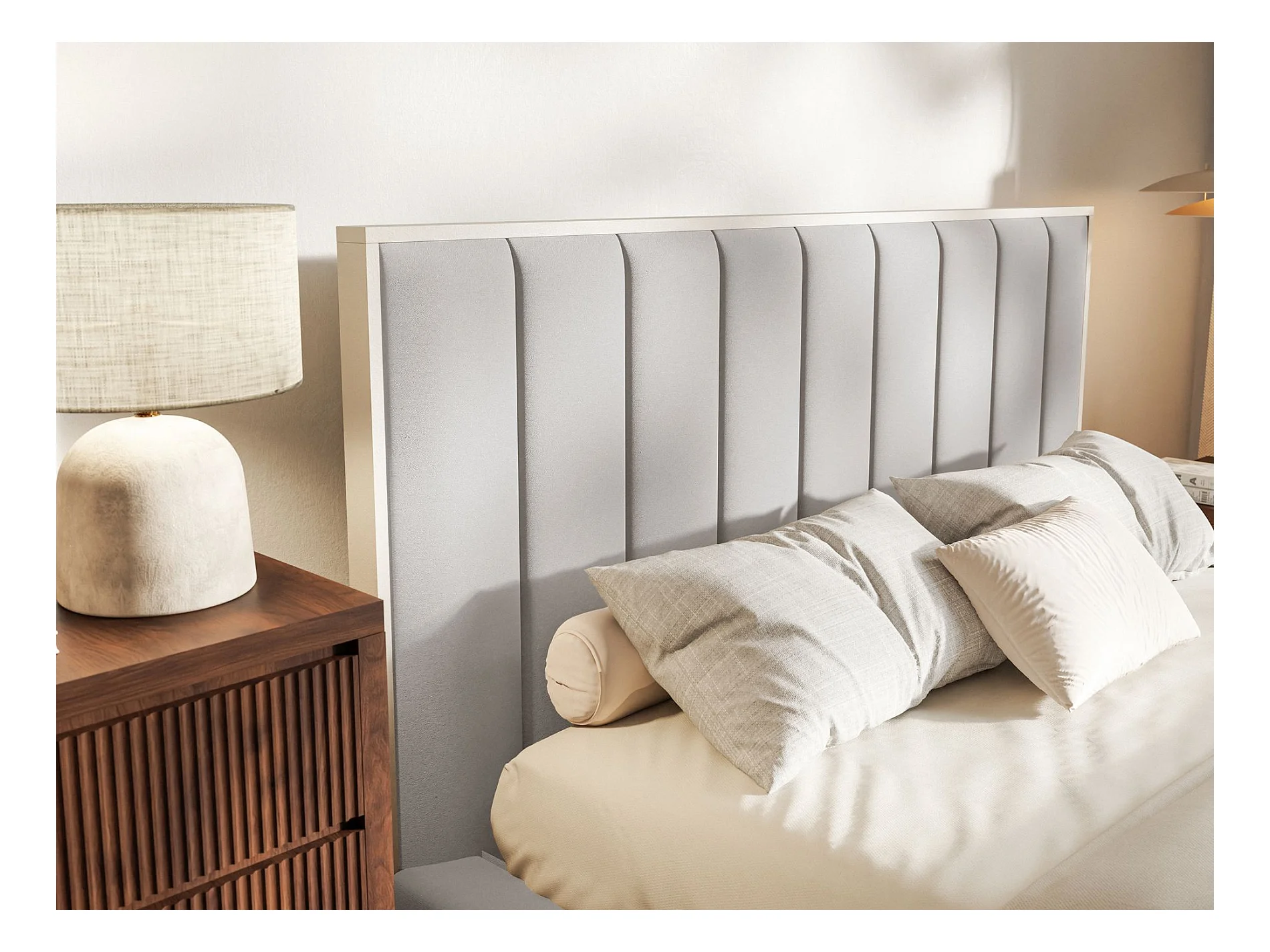 Polsterbett 140x200 mit Veloursbezug und LED – Hellgrau – TOGENTS