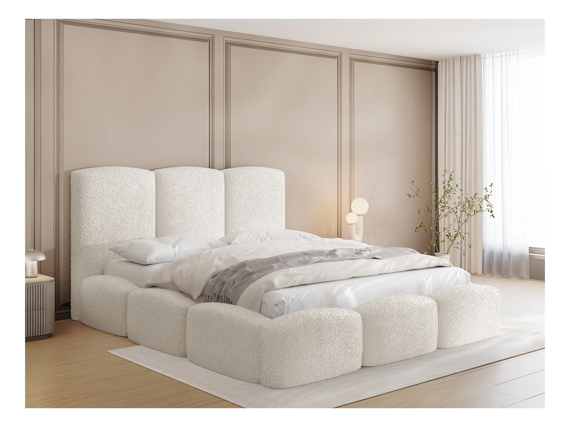 Polsterbett 160x200 – Bettkasten mit Lattenrost – Boucle oder Samt Beige – Hohes Kopfteil – Bettgestell ohne Matratze – Harmony – Modernes Doppelbett – Creme