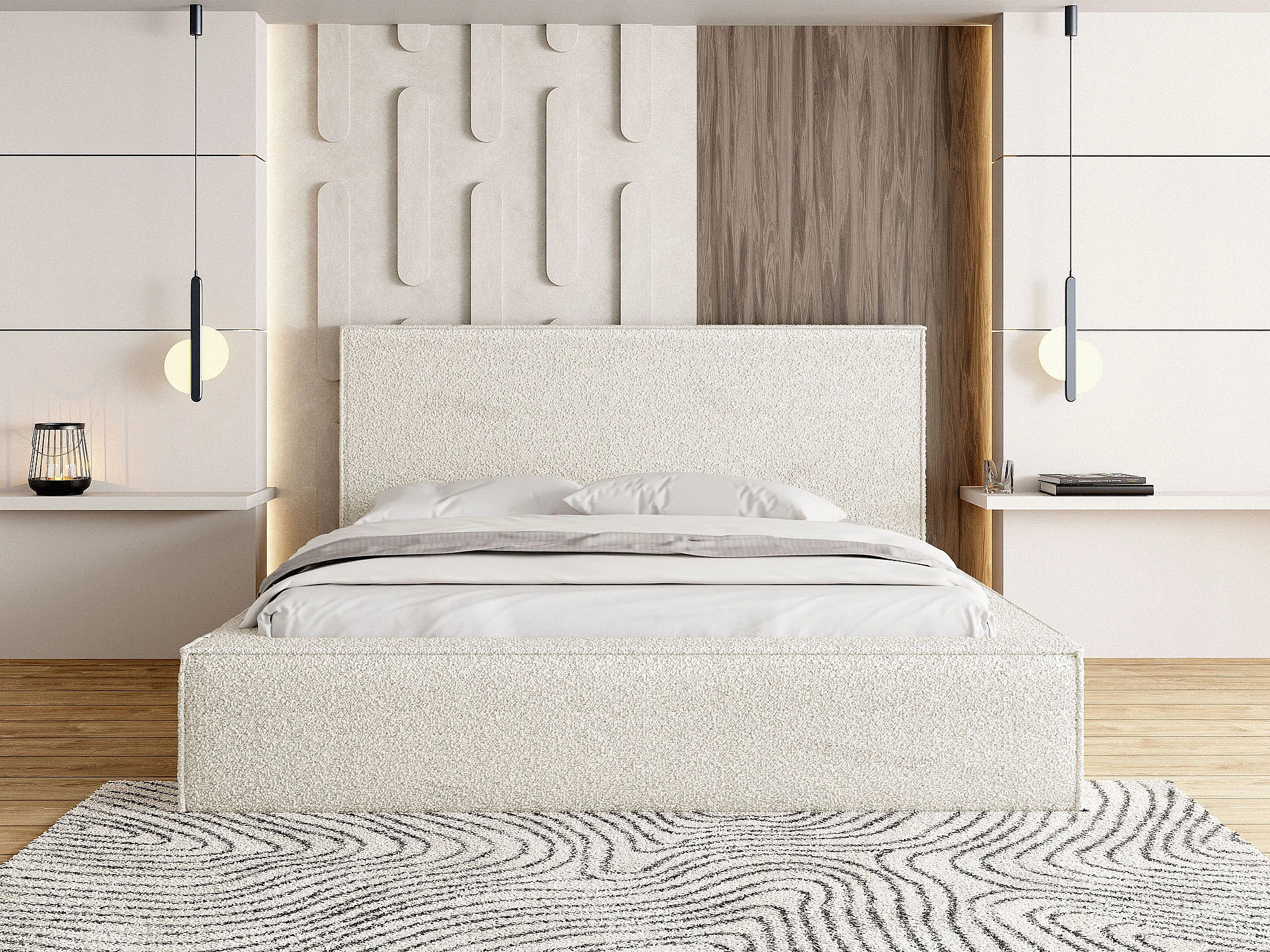 Polsterbett 160x200 – Bettkasten mit Lattenrost – Bouclé oder Samt Weiß – Hohes Kopfteil – Bettgestell ohne Matratze – Terra – Modernes Doppelbett – Creme