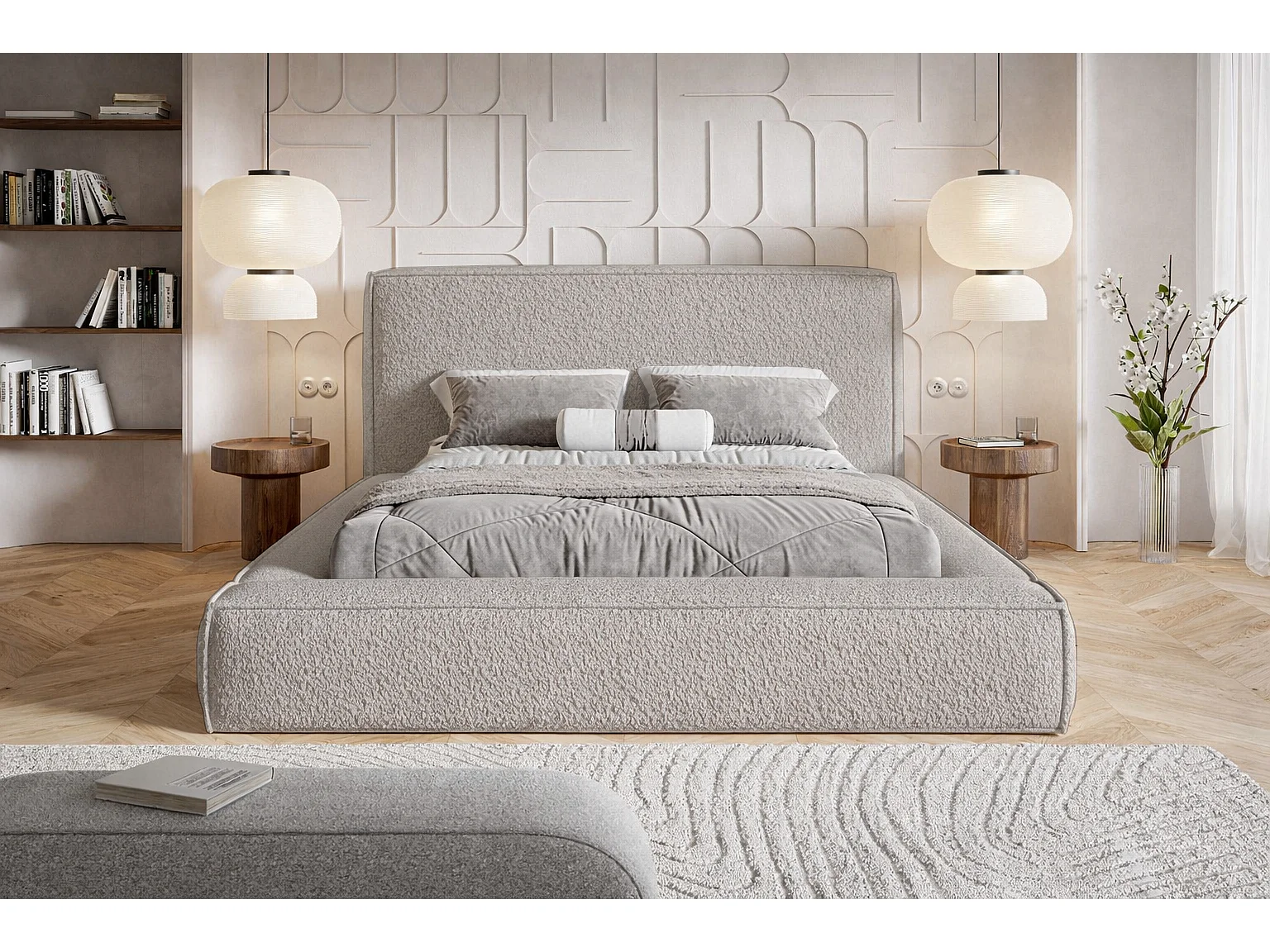 Polsterbett 160x200 Karano mit Bettkasten - Lattenrost, Samtstoff - Hellgrau (Catch Me 24)