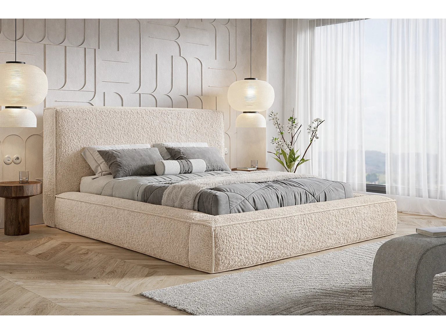 Polsterbett 160x200 Karano mit Bettkasten - Metall-Lattenrost, Samtstoff - Beige (Catch Me 2)