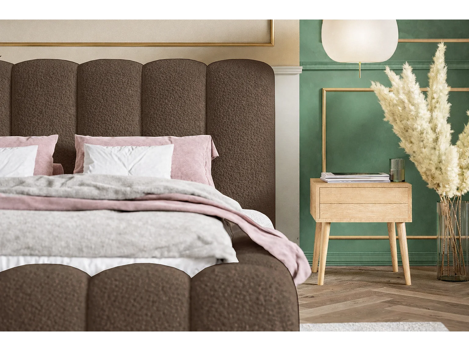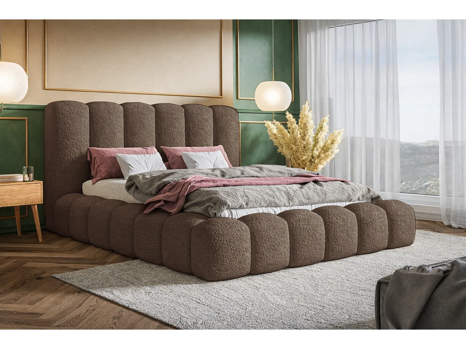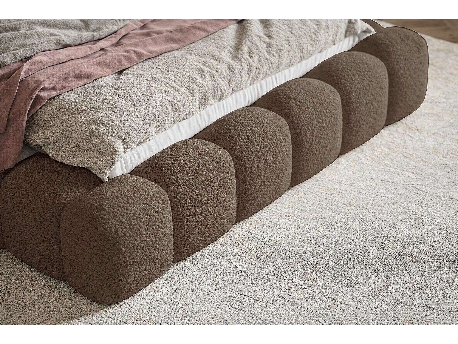 Polsterbett 160x200 Madeno mit Bettkasten - hochwertigem Schaumstoff, Metall-Lattenrost - Bouclé, Braun (Catch me 6)