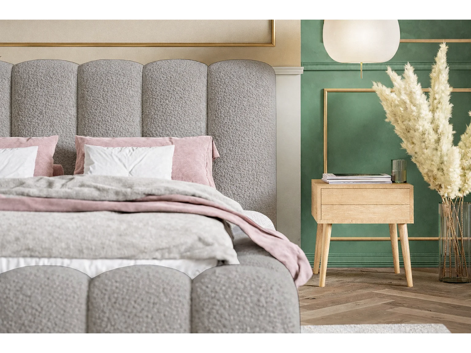 Polsterbett 160x200 Madeno mit Bettkasten - hochwertigem Schaumstoff, Metall-Lattenrost - Bouclé, Hellgrau (Catch me 24)