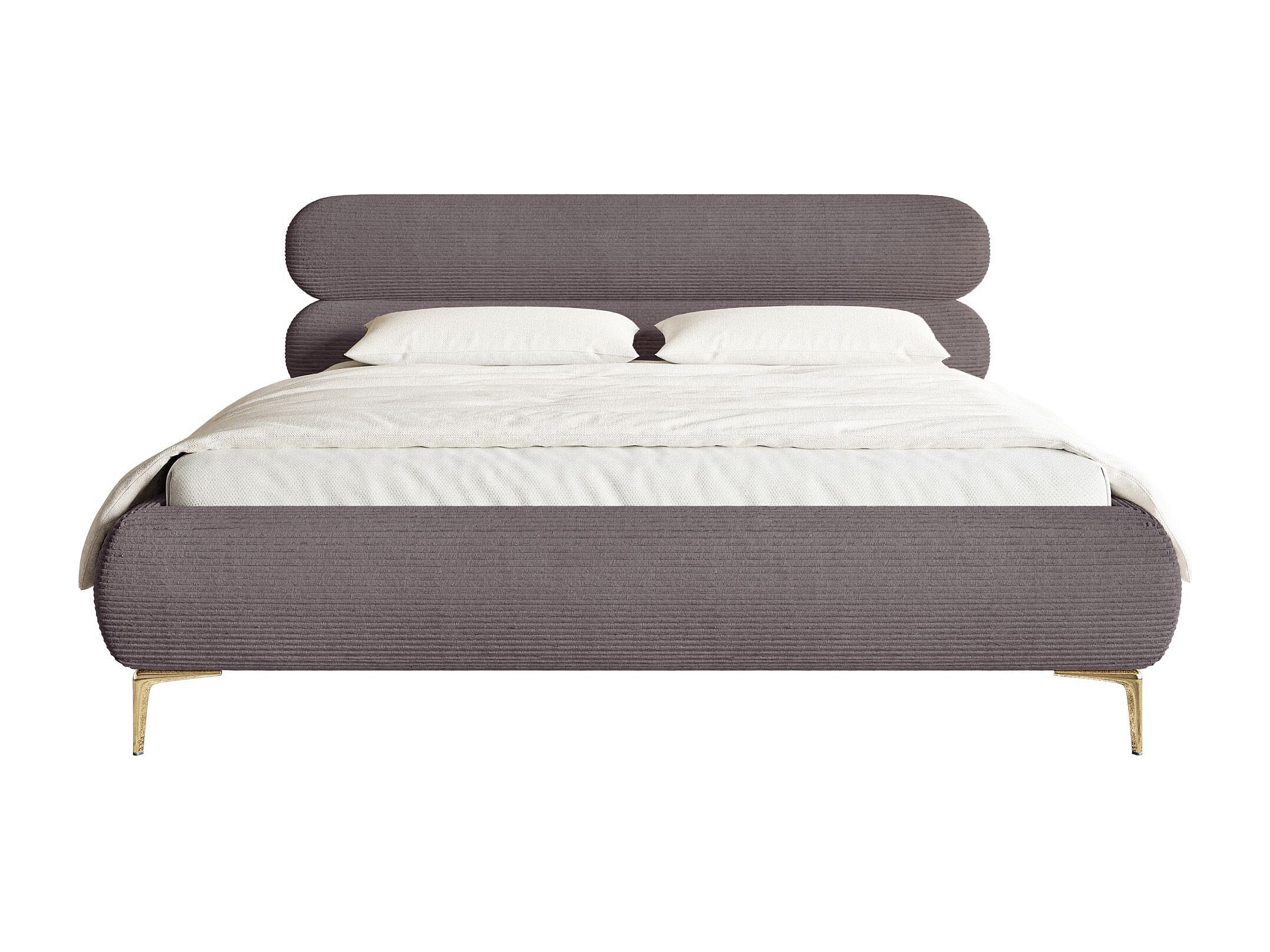 Polsterbett 160x200 mit Bettkasten – Cordstoff – goldfarbenen Füßen – Braun – ROULE CORD