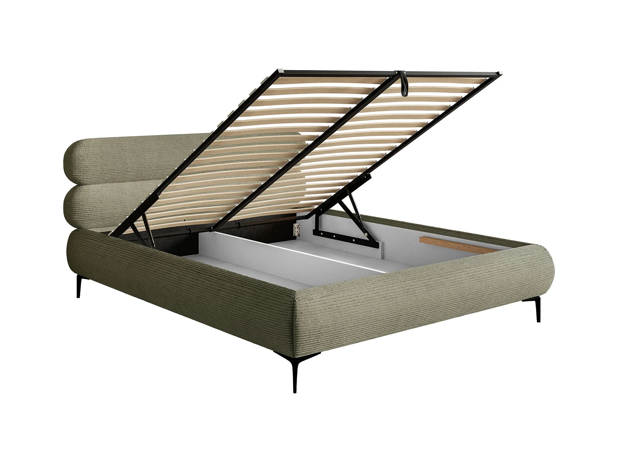 Polsterbett 160x200 mit Bettkasten – Cordstoff – schwarzen Füßen – Olivgrün – ROULE CORD