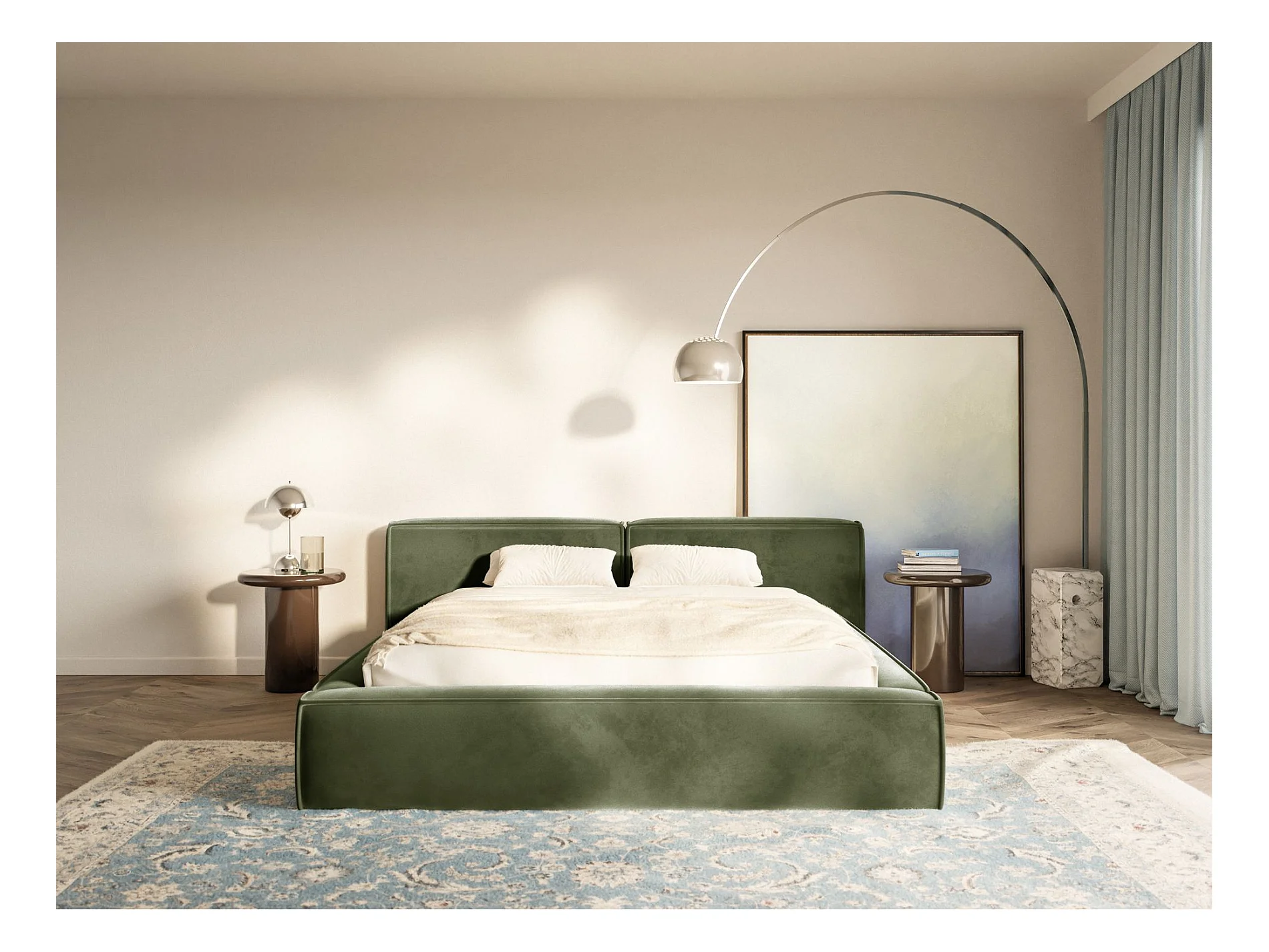 Polsterbett 160x200 mit Bettkasten – Lattenrost – Velours – olivgrün – TILVES LOW