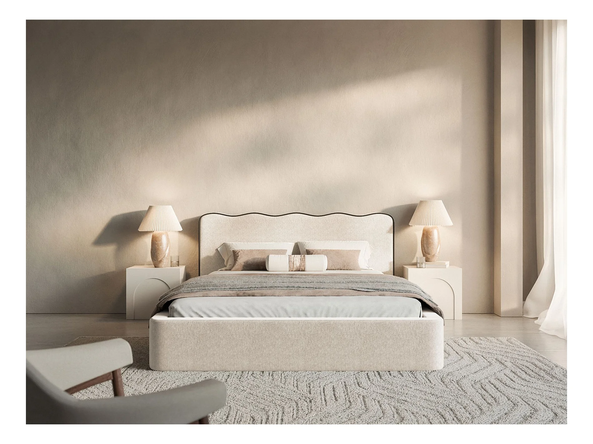 Polsterbett 160x200 - mit Strukturstoff - Hellbeige - DUNEY