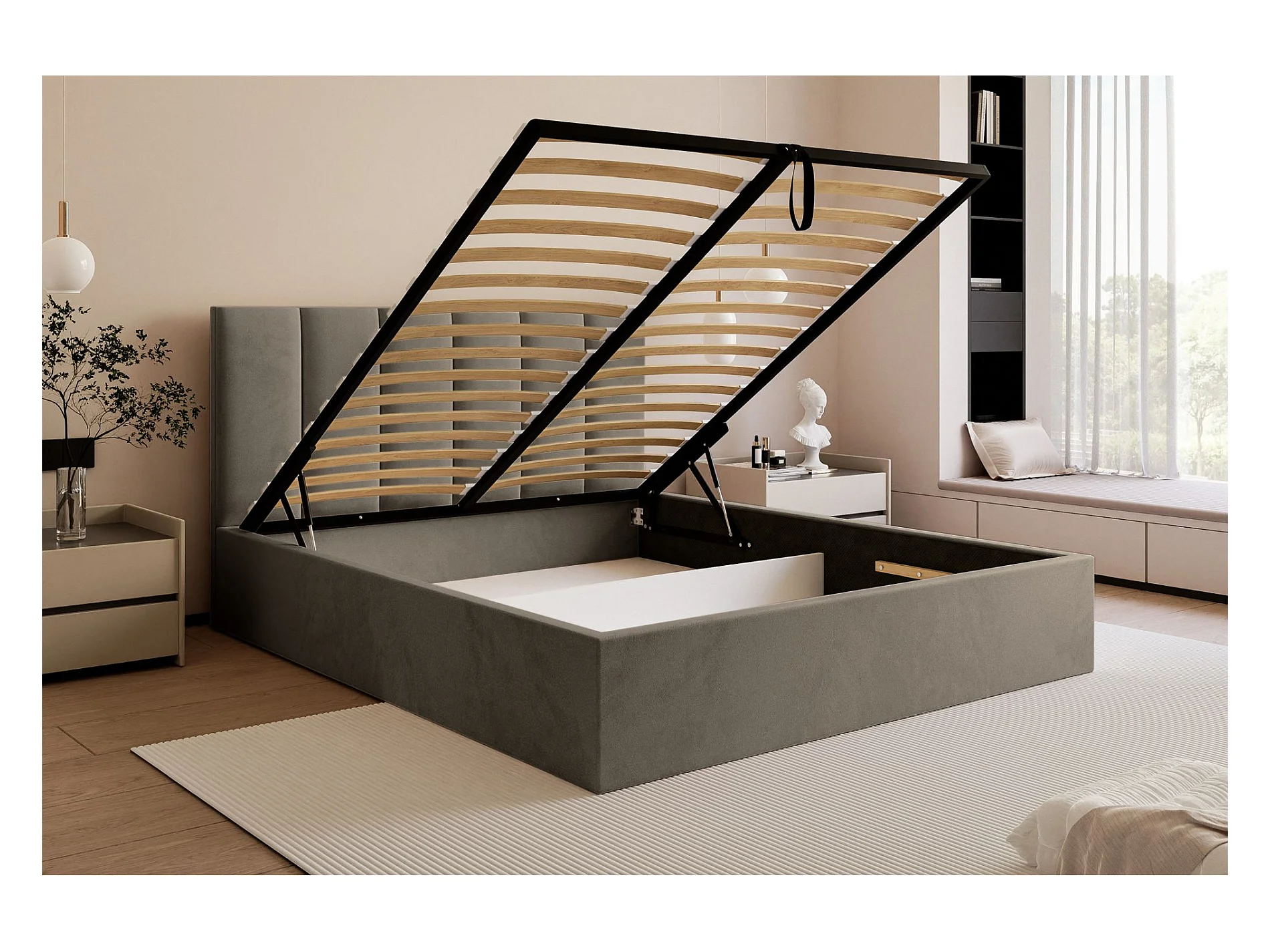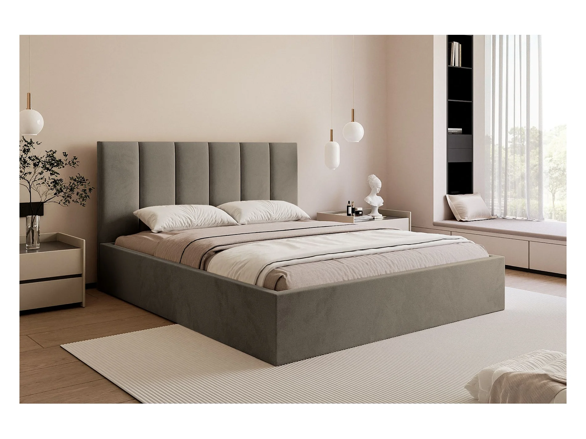 Polsterbett 160x200 - mit Veloursbezug - graubeige - MASEGO
