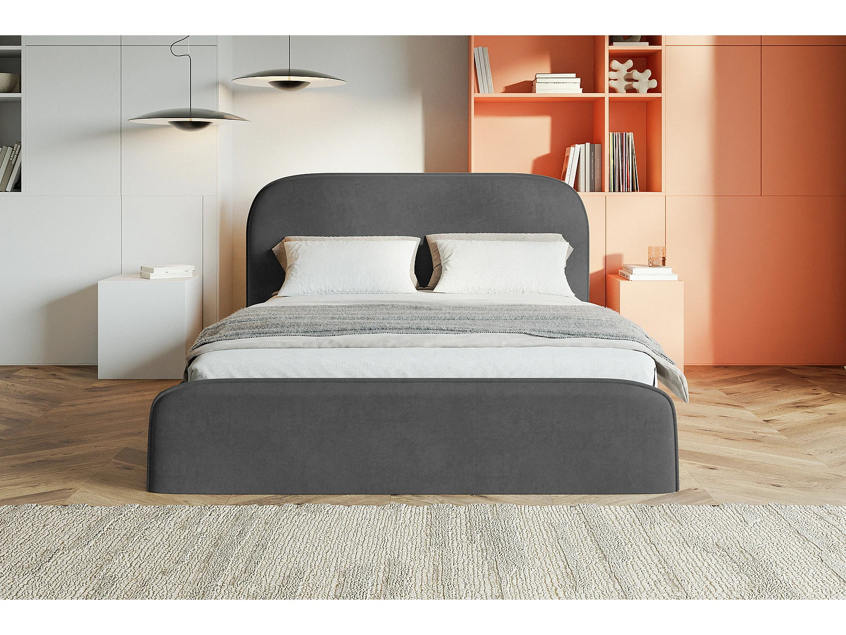Polsterbett 160x200 Wendra - Bettkasten, rundem Kopfteil, Lattenrost - Dunkelgrau (Amor Velvet 4321)